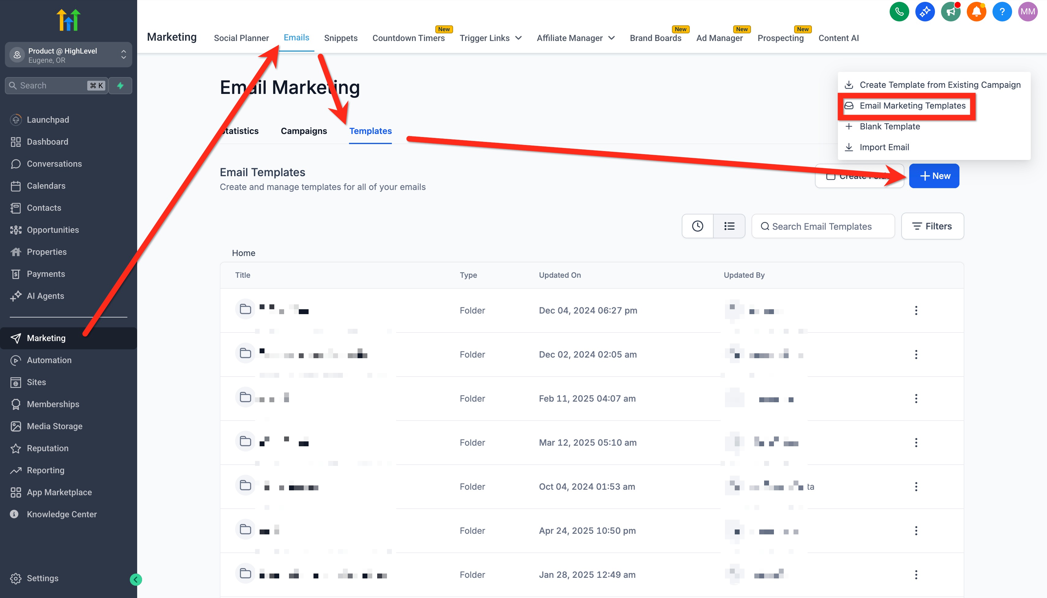 - Or you can select Templates Tab > click the 3-dot action menu next to your chosen email template and select Create Campaign