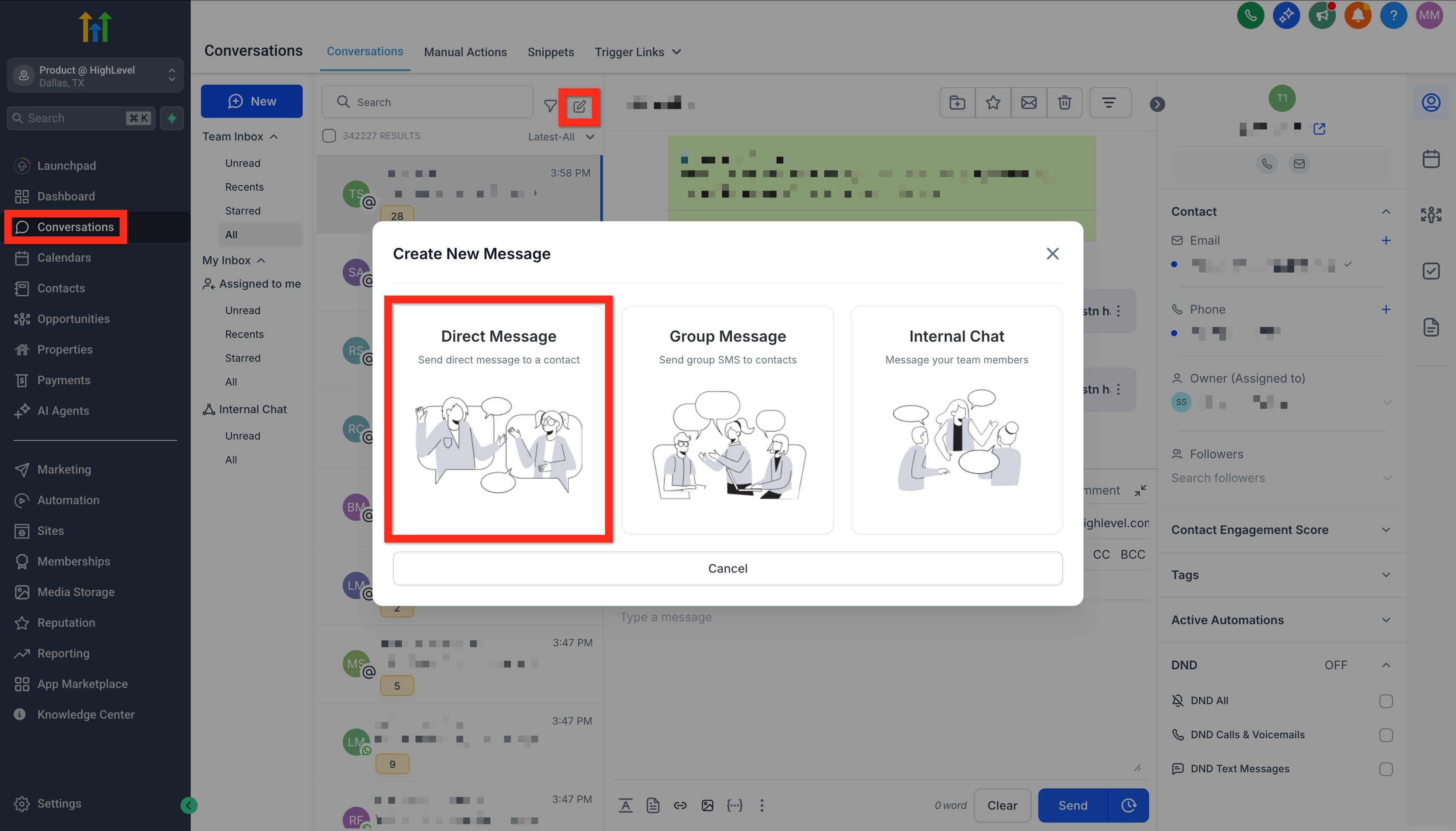 Next, you can start sending messages directly from within HighLevel to make your workflow even smoother.