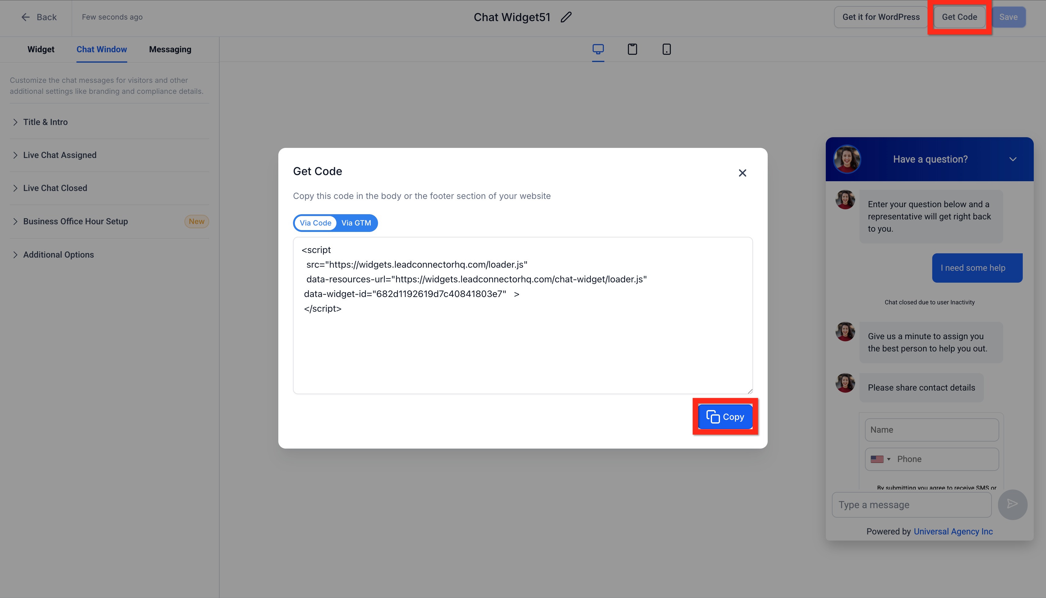 Deploy Live Chat Widget via Embed Code