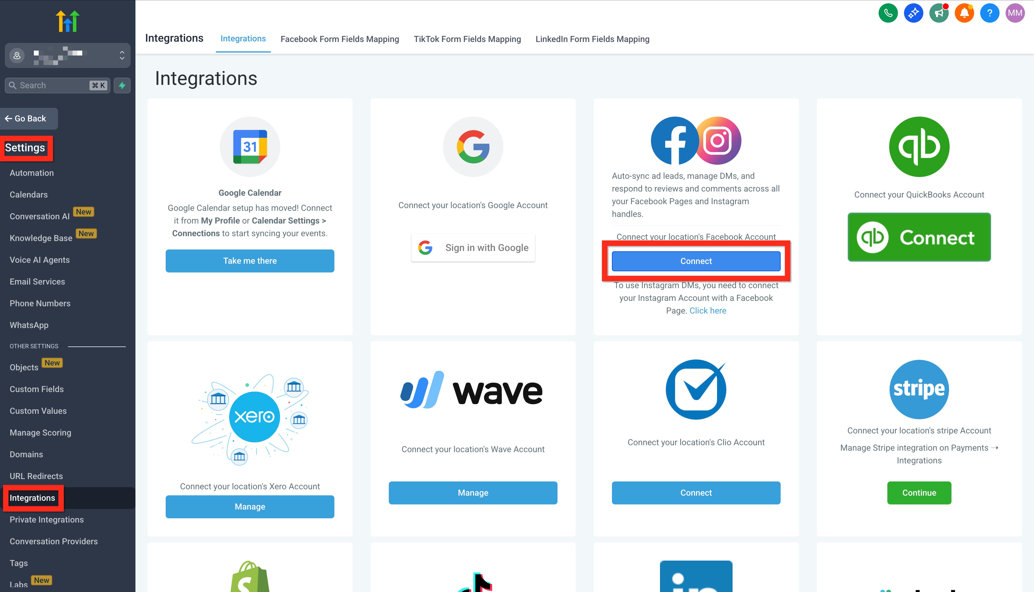 First, let's get Facebook and Instagram working together within your CRM. This integration will be a game changer in how quickly and effectively you communicate with customers.