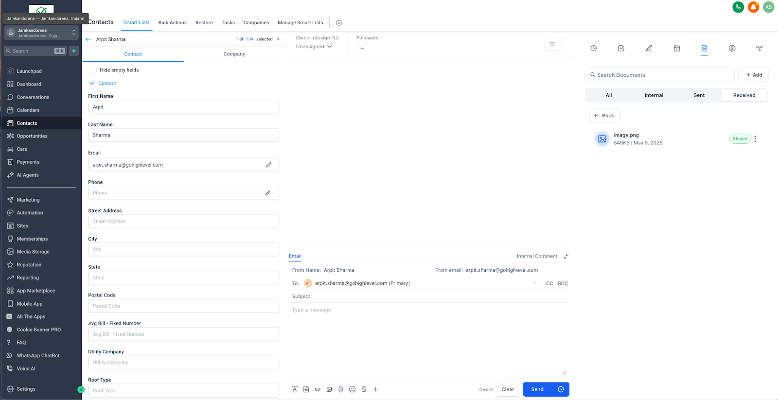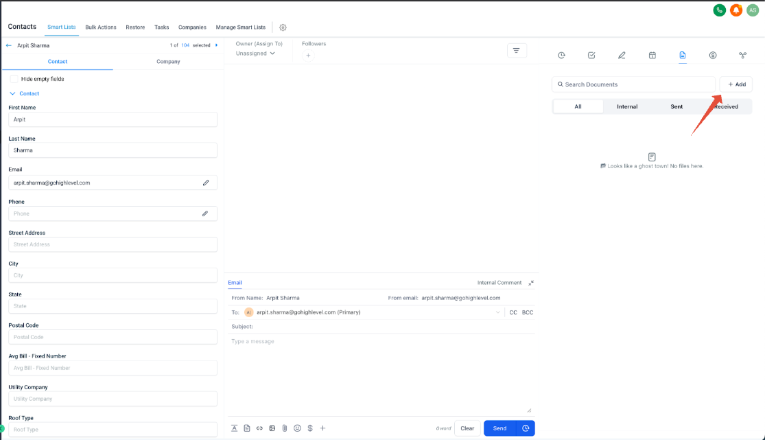 In the CRM, select Contacts, choose a contact, then click Documents in the left menu.