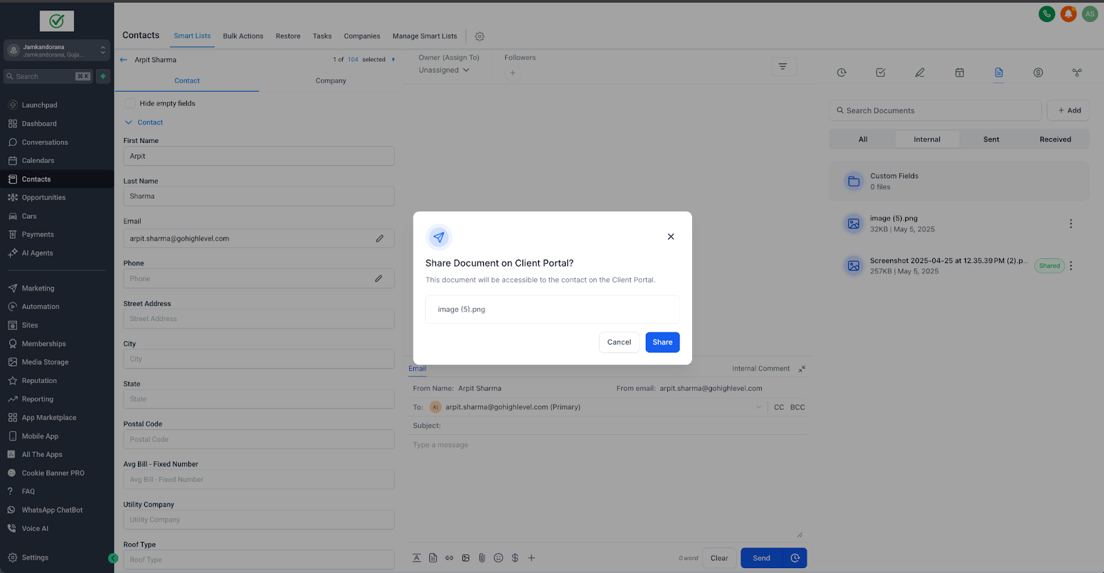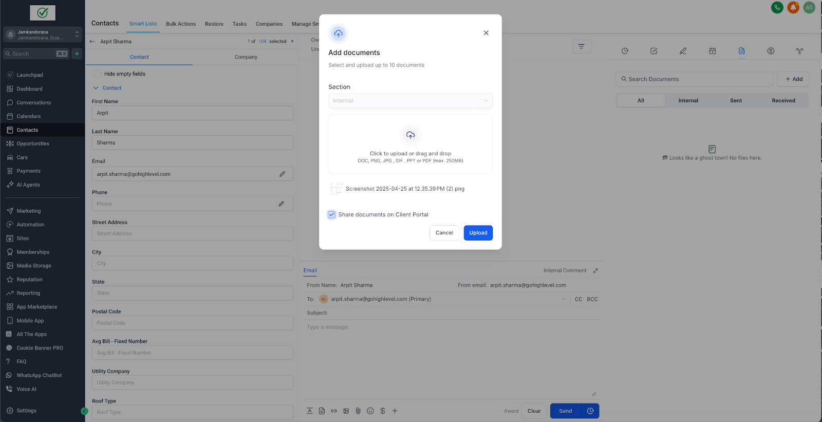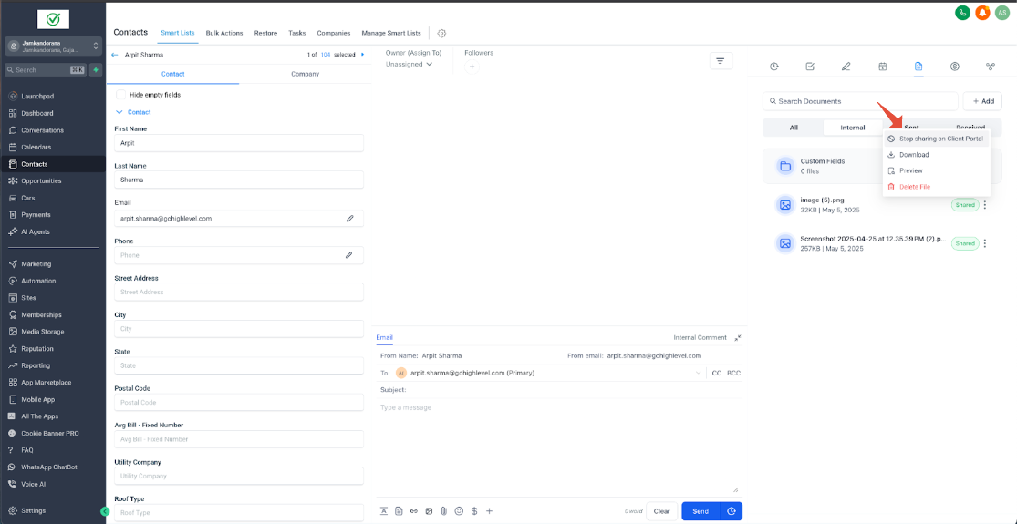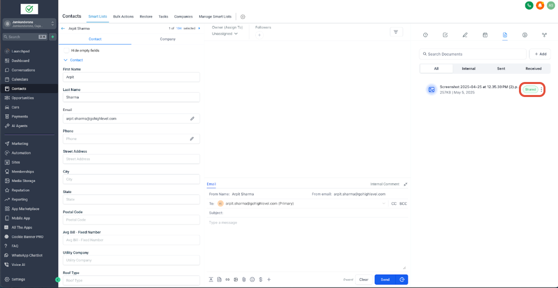 Shared files appear instantly in the contact’s portal under Shared Documents.