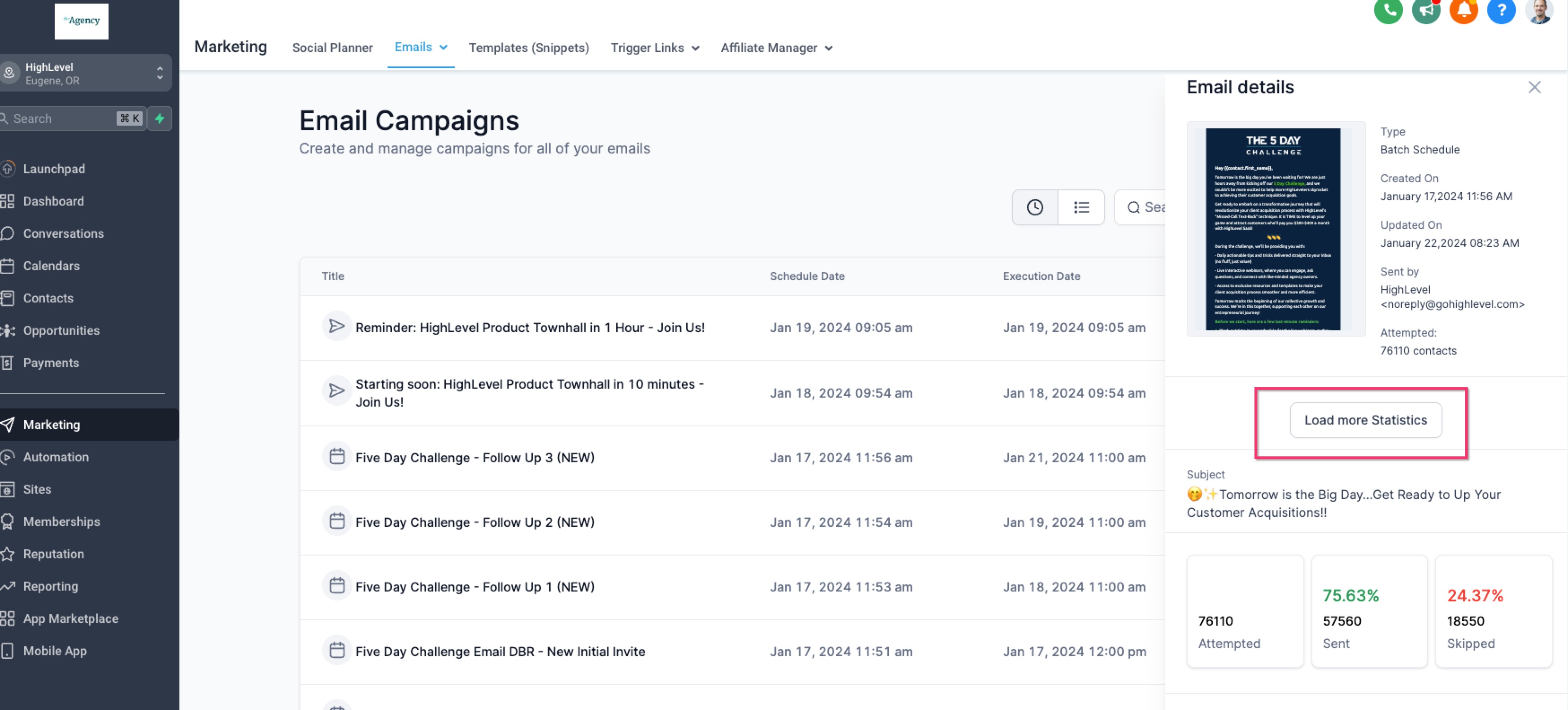 - Go to "Marketing" > "Emails" > "Campaigns."