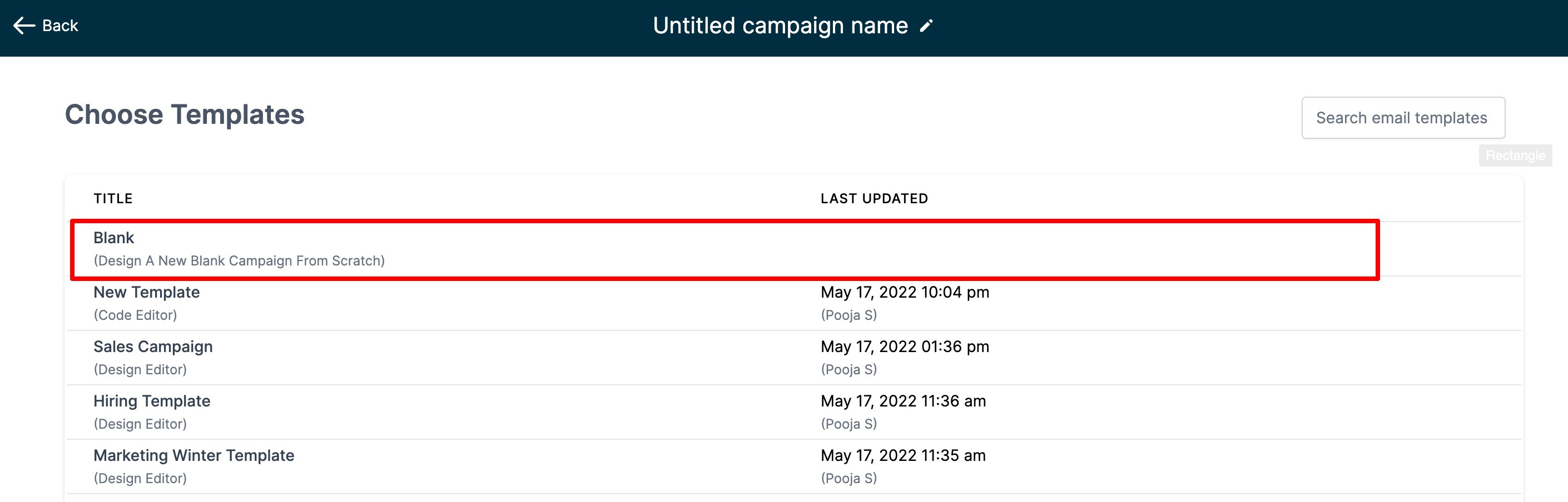2. There will also be a screen with a list of all the templates and blank campaigns. Select the option of Blank Campaign to go forward.