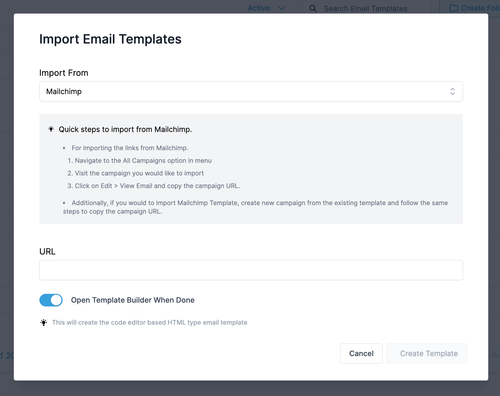 - 3 - Click Create Template to Import the Mailchimp