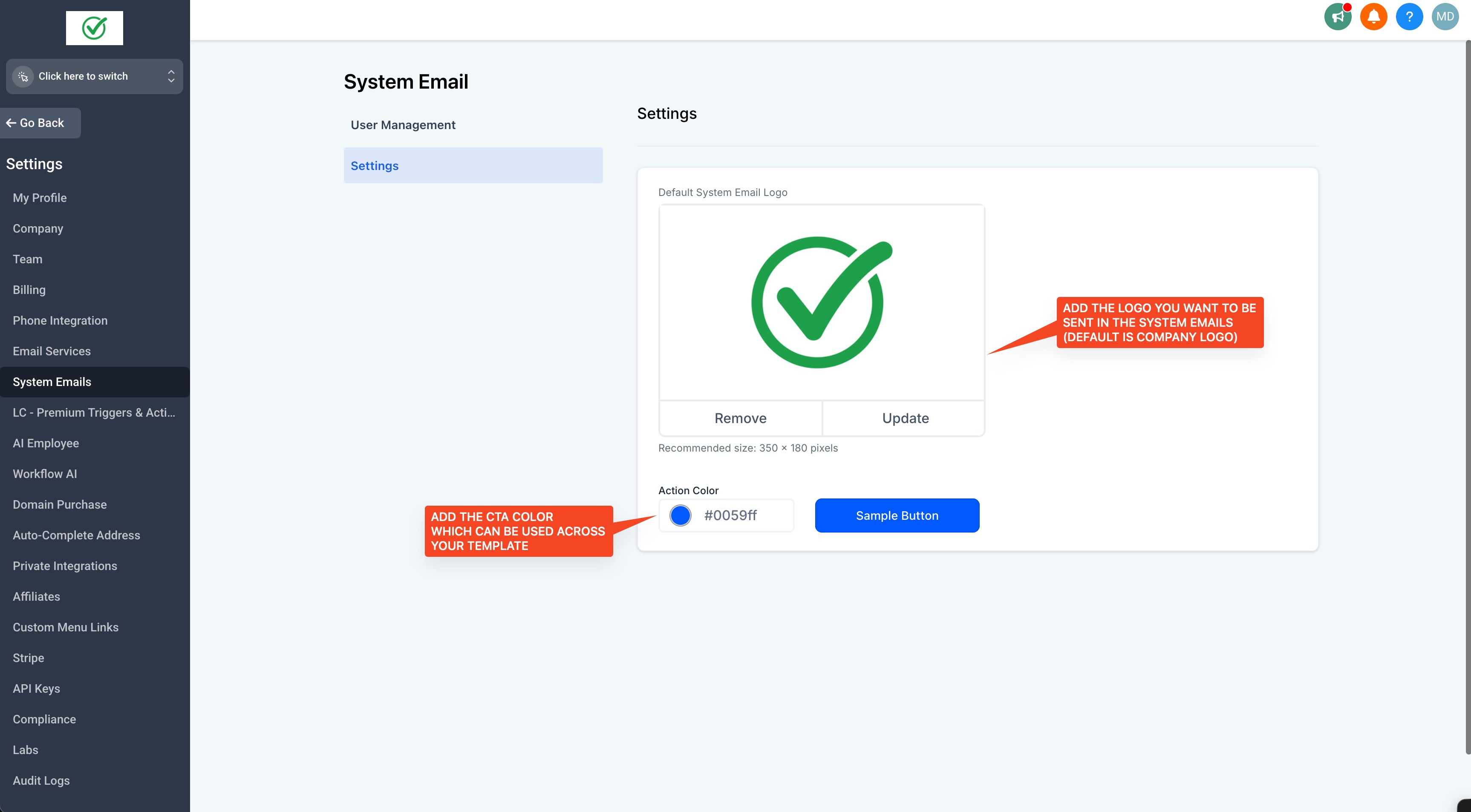 - Easy Access and Management: Manage email templates directly from your Agency Settings