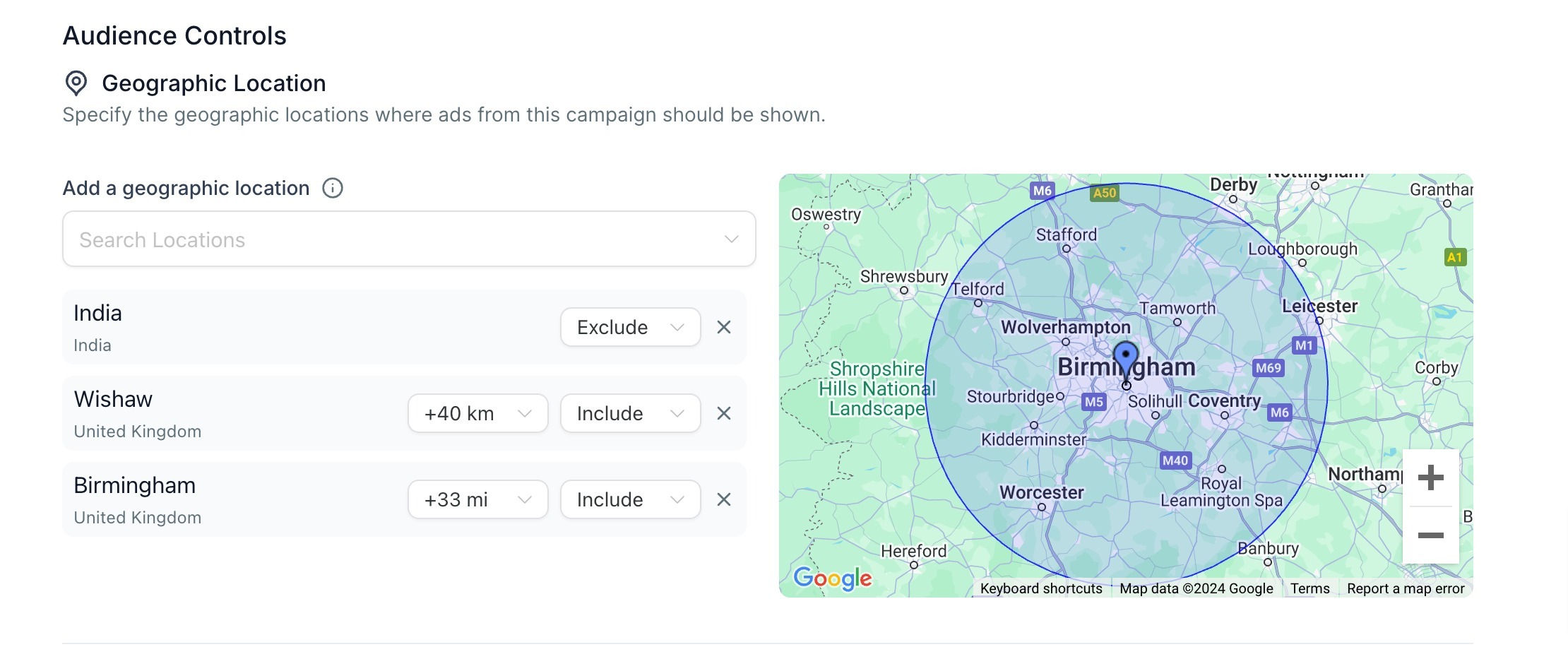 - Zip codes or postal codes: These are not allowed for Special Ad Category ads. If you select specific locations, they will include a minimum of a 15-mile or 25km radius.