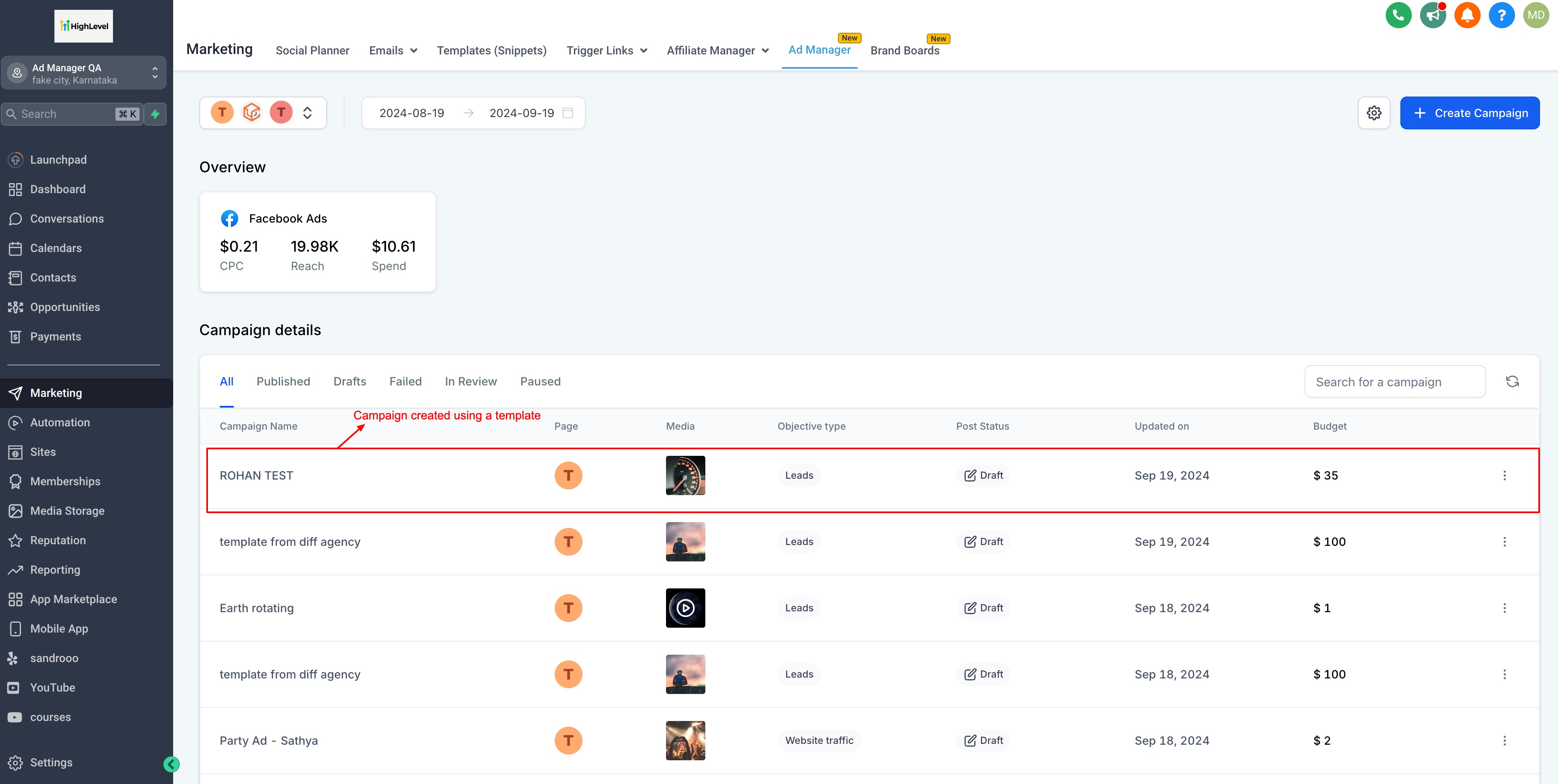 Catering to the fact that there might be some exceptional campaigns that have outperformed and deserves to be saved as templates for future campaign creation process or you want to allow users of different sub-account to use the format of this campaign. In order to do that, below is a list of steps to be followed to create a template out of a campaign: