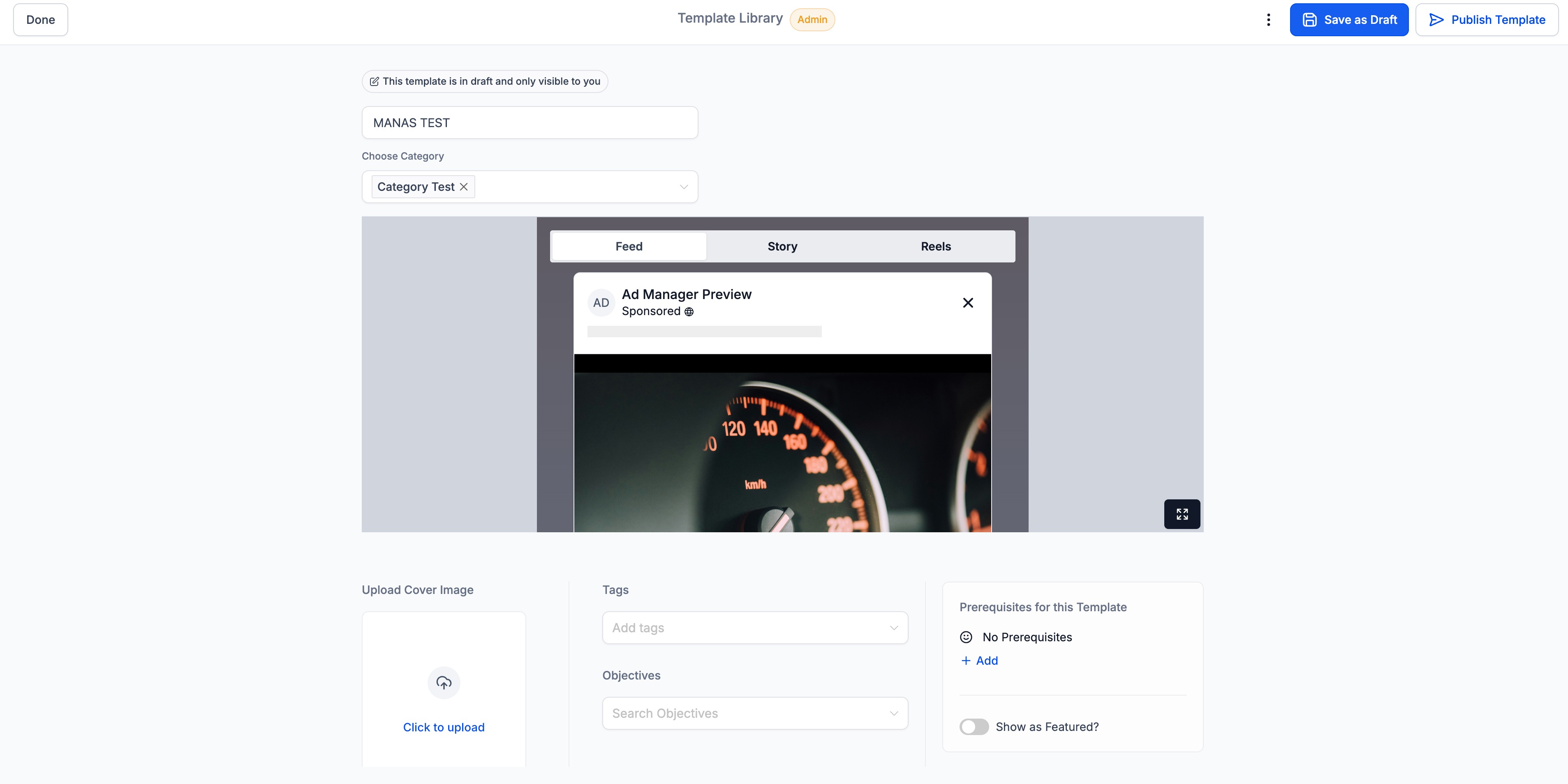- On click of 'Upload', a screen showcasing the draft template opens up which can be modified if needed and saved as draft or can be published as a template.