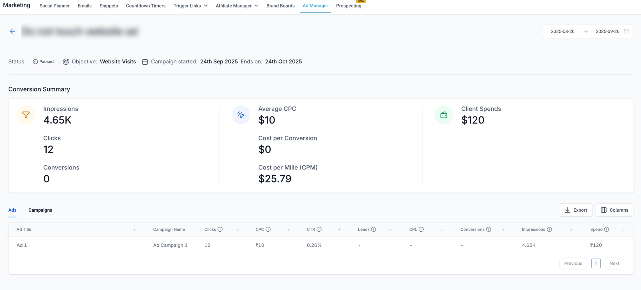 Conversions (Website Traffic campaigns only).