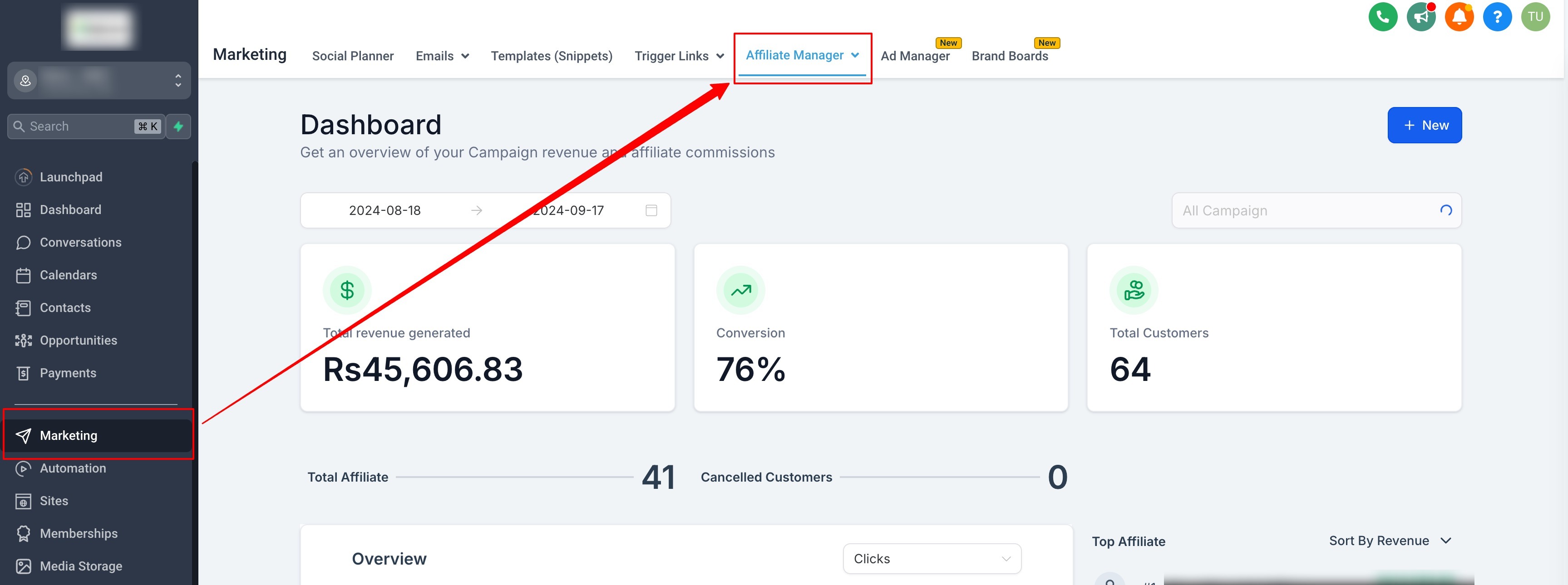 - Track Leads : Affiliates share their unique link with their network. Whenever someone clicks on the link and shows interest by filling out a form or booking a calendar appointment, they become a lead. Admins can also add leads manually.