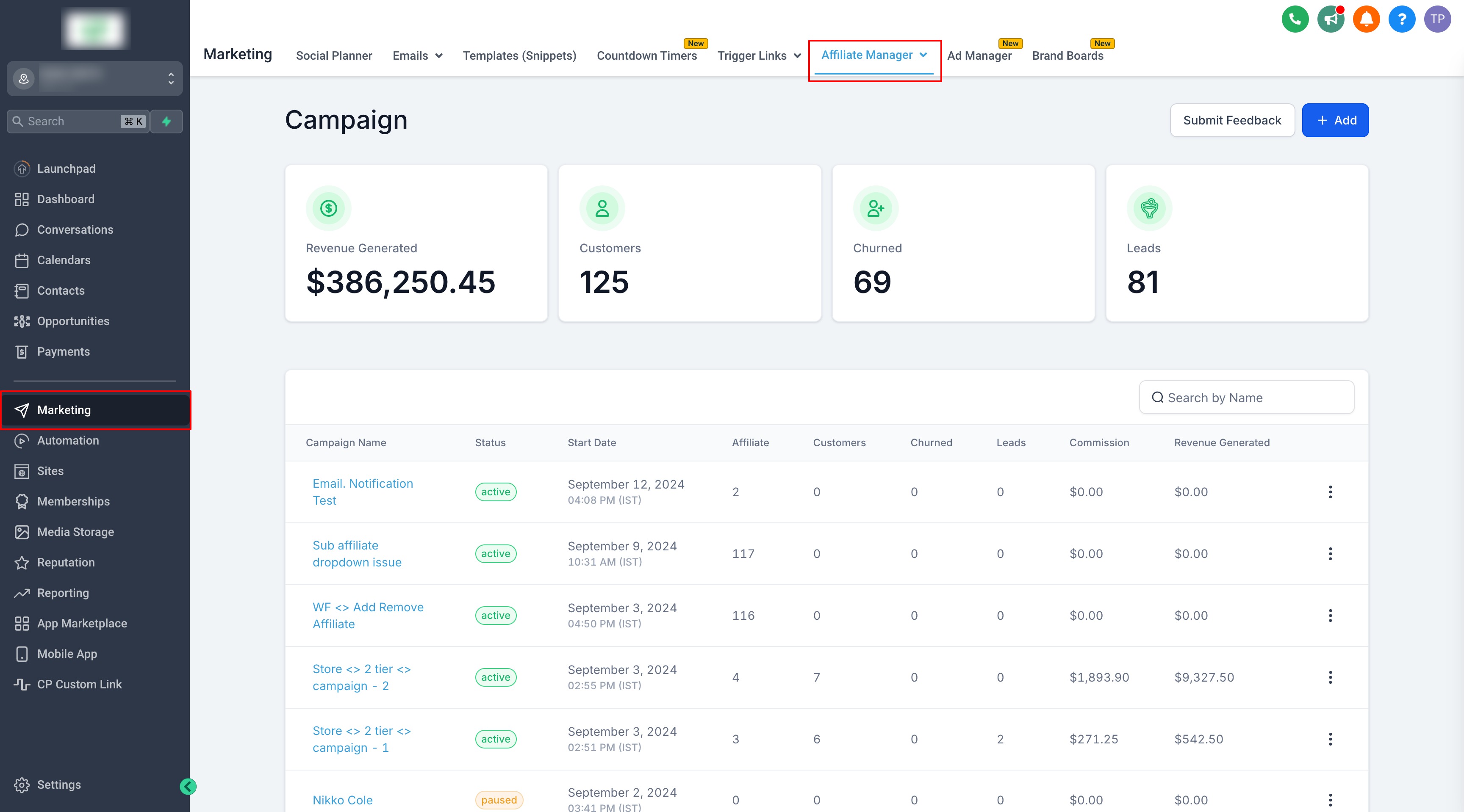 Affiliates can participate in multiple campaigns at the same time, giving them the flexibility to promote various products or services. As a campaign manager, you have full control to: