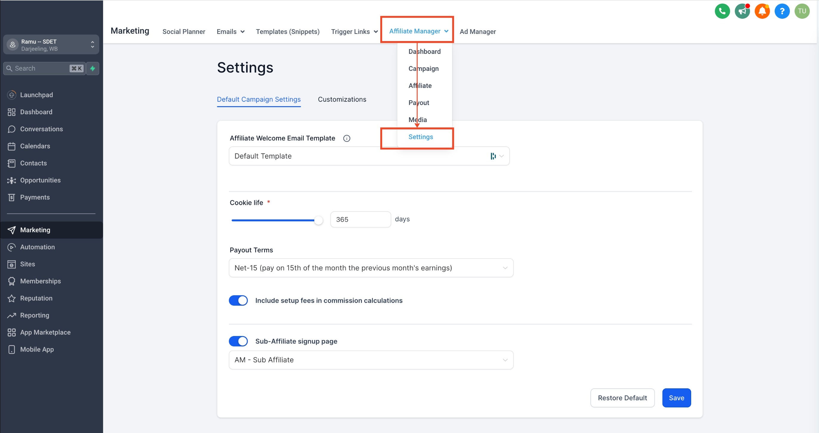 - Navigate to the Affiliate Page: Go to the Affiliate Manager under the Marketing section.