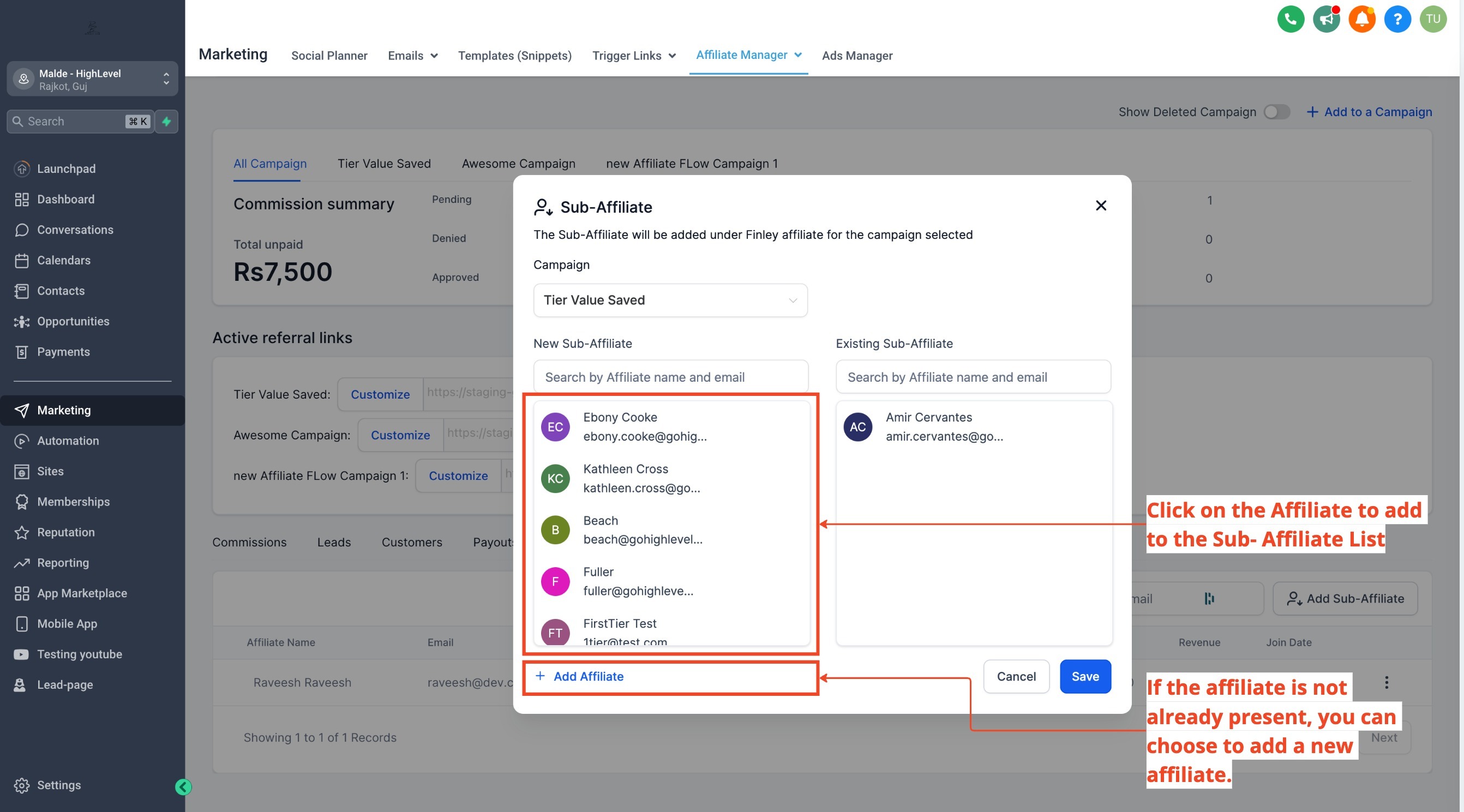 1. Add Sub-Affiliates Manually