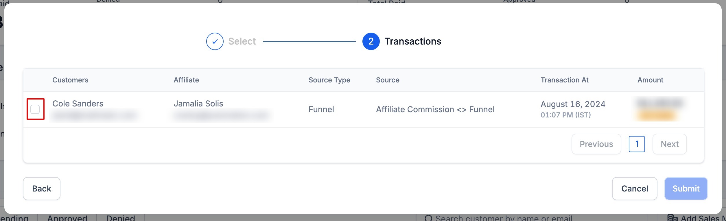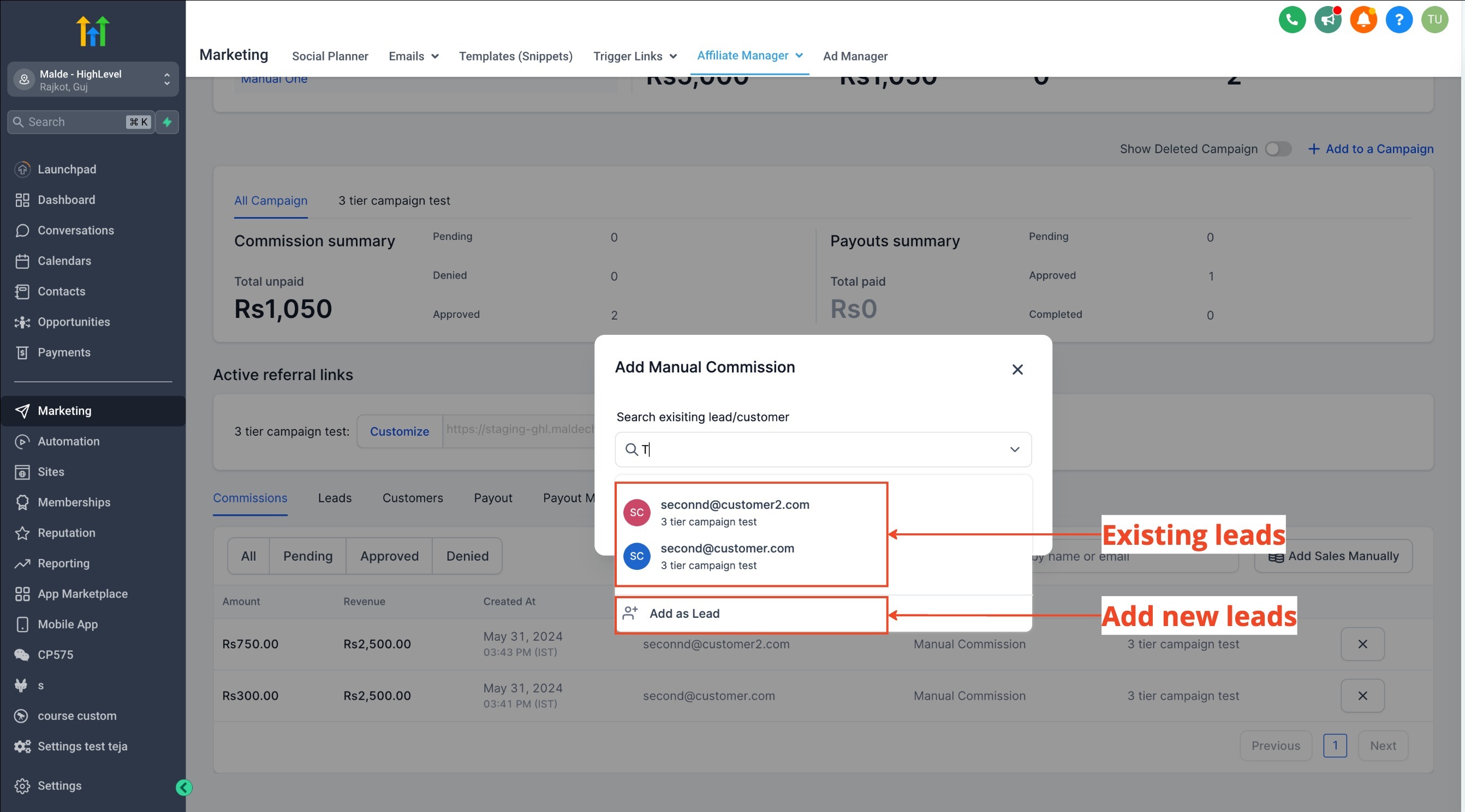 - Step 2: Select the affiliate profile and go to the Commissions tab.