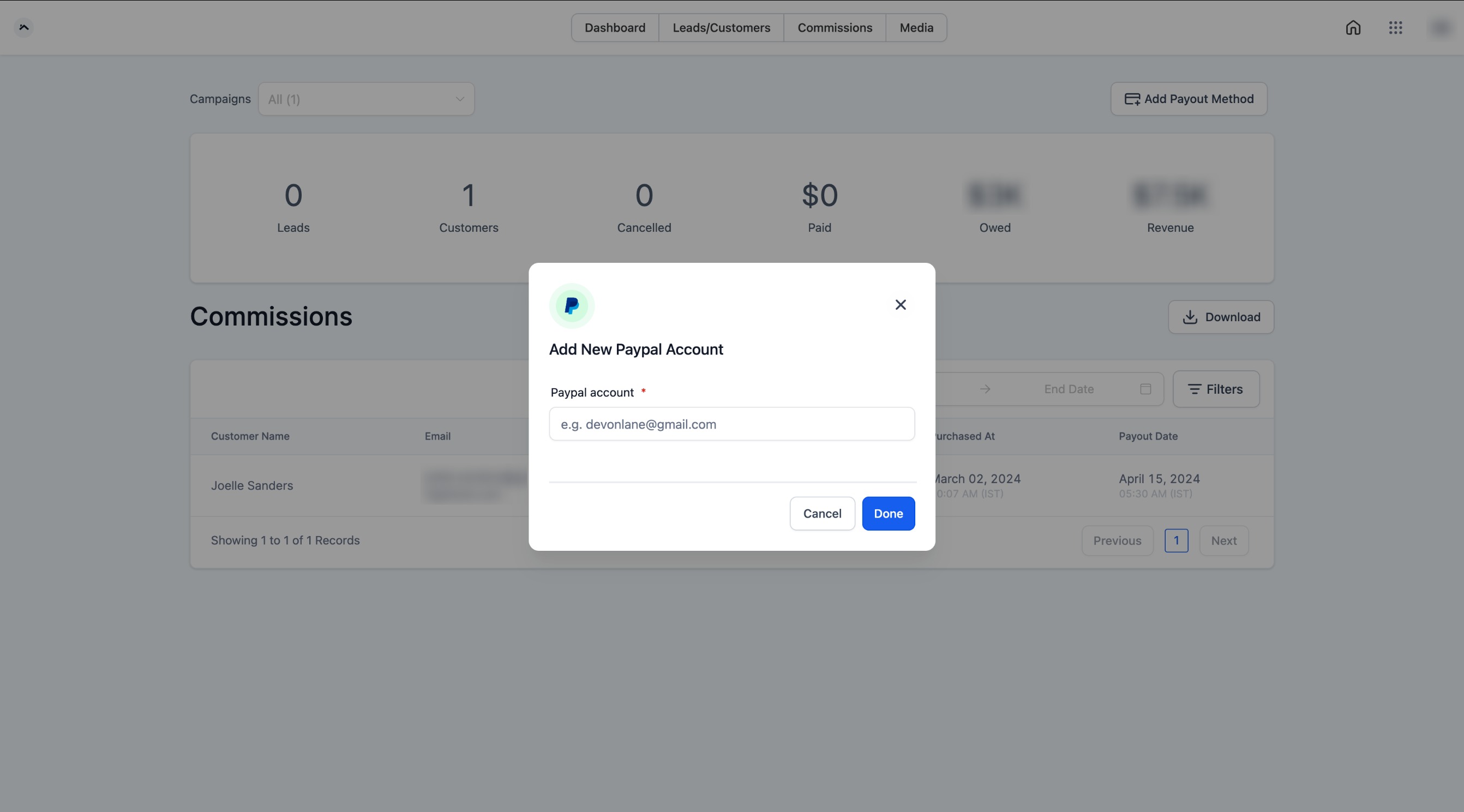 Please Note: Currently, PayPal APIs do not support account validation, so please exercise caution and ensure that valid PayPal email IDs are added for the affiliates.