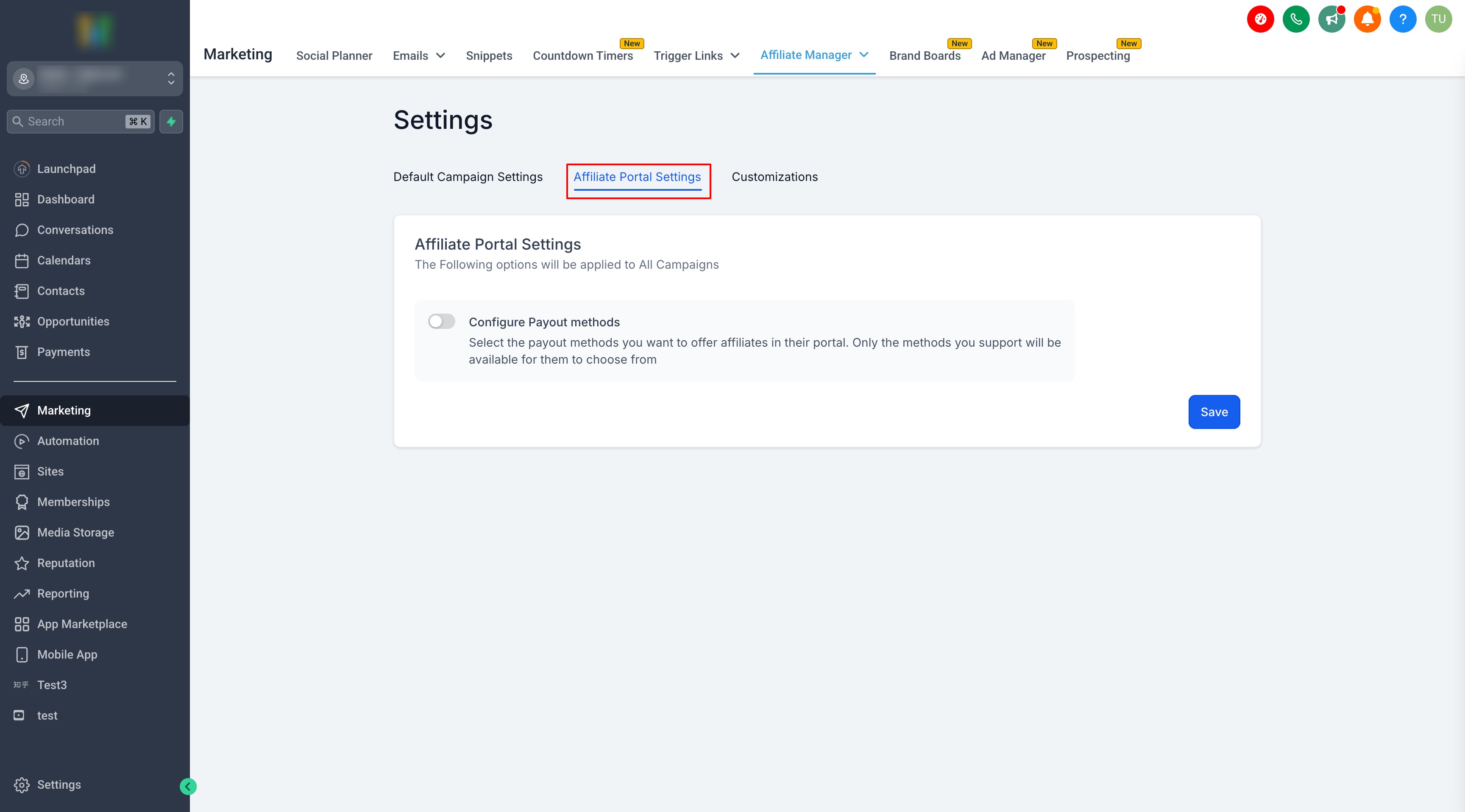 2. Click Affiliate Portal Settings → Configure Payout Methods