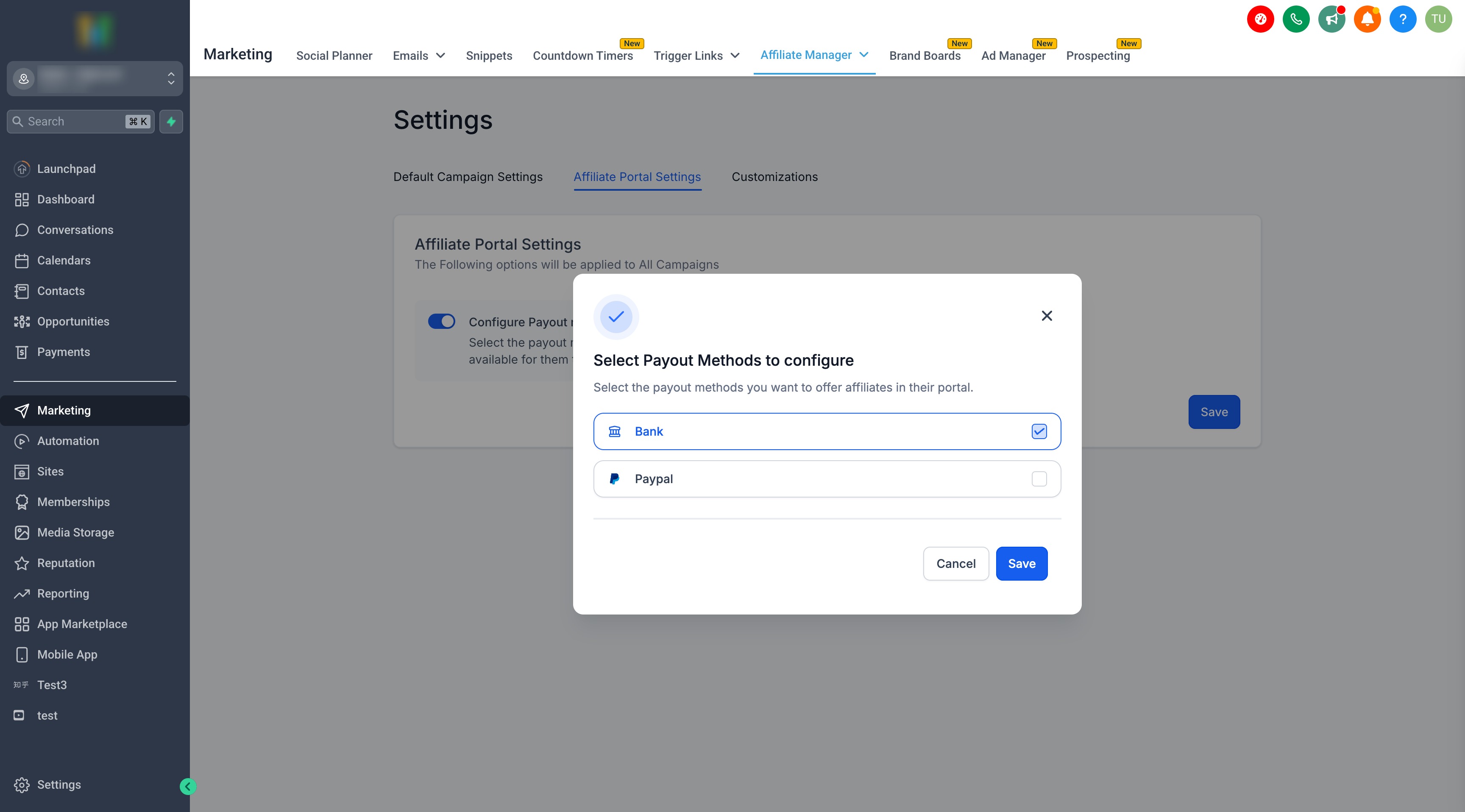 - Bank Payments: Use banks or other methods to pay affiliates manually, then mark the payouts as paid in GHL.