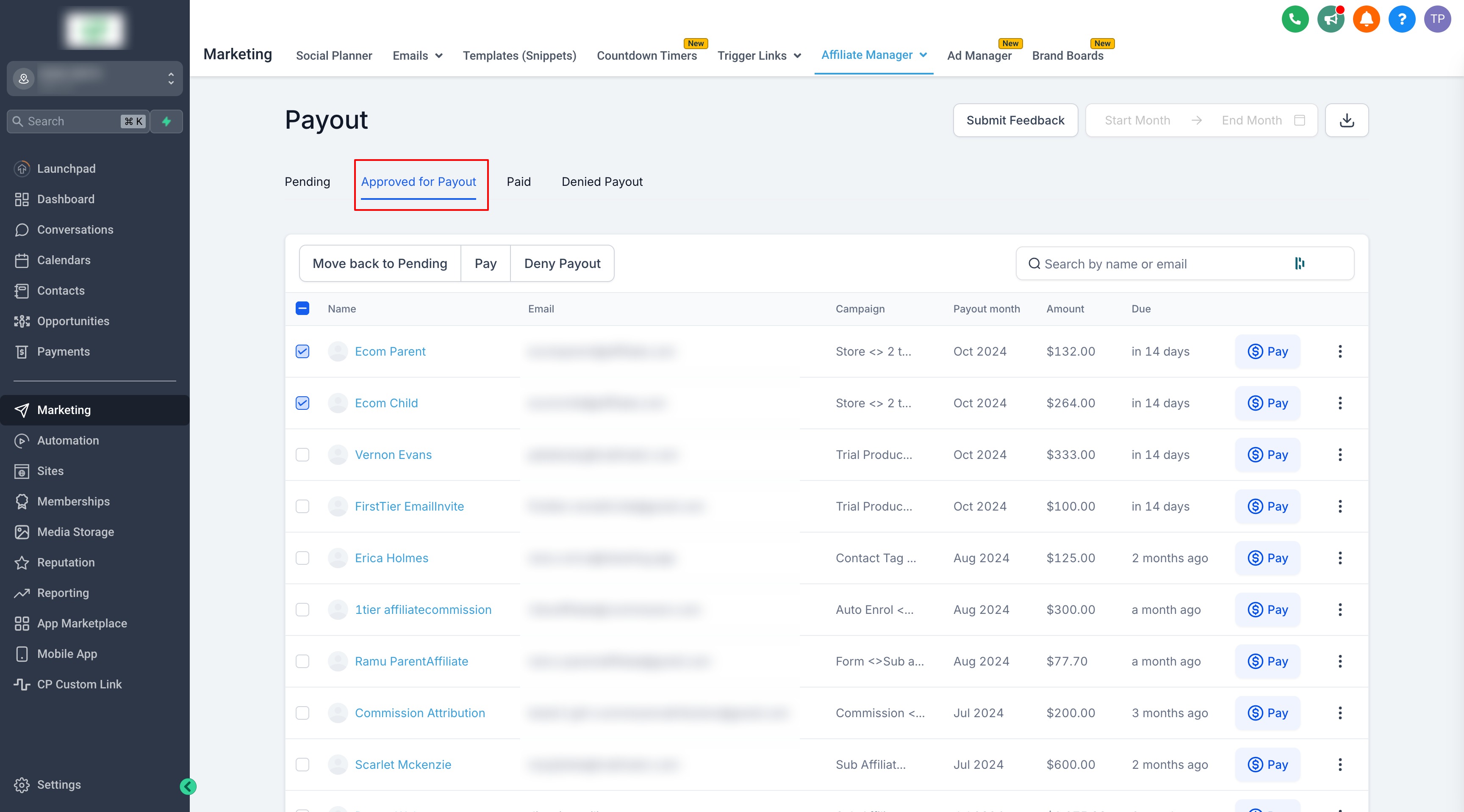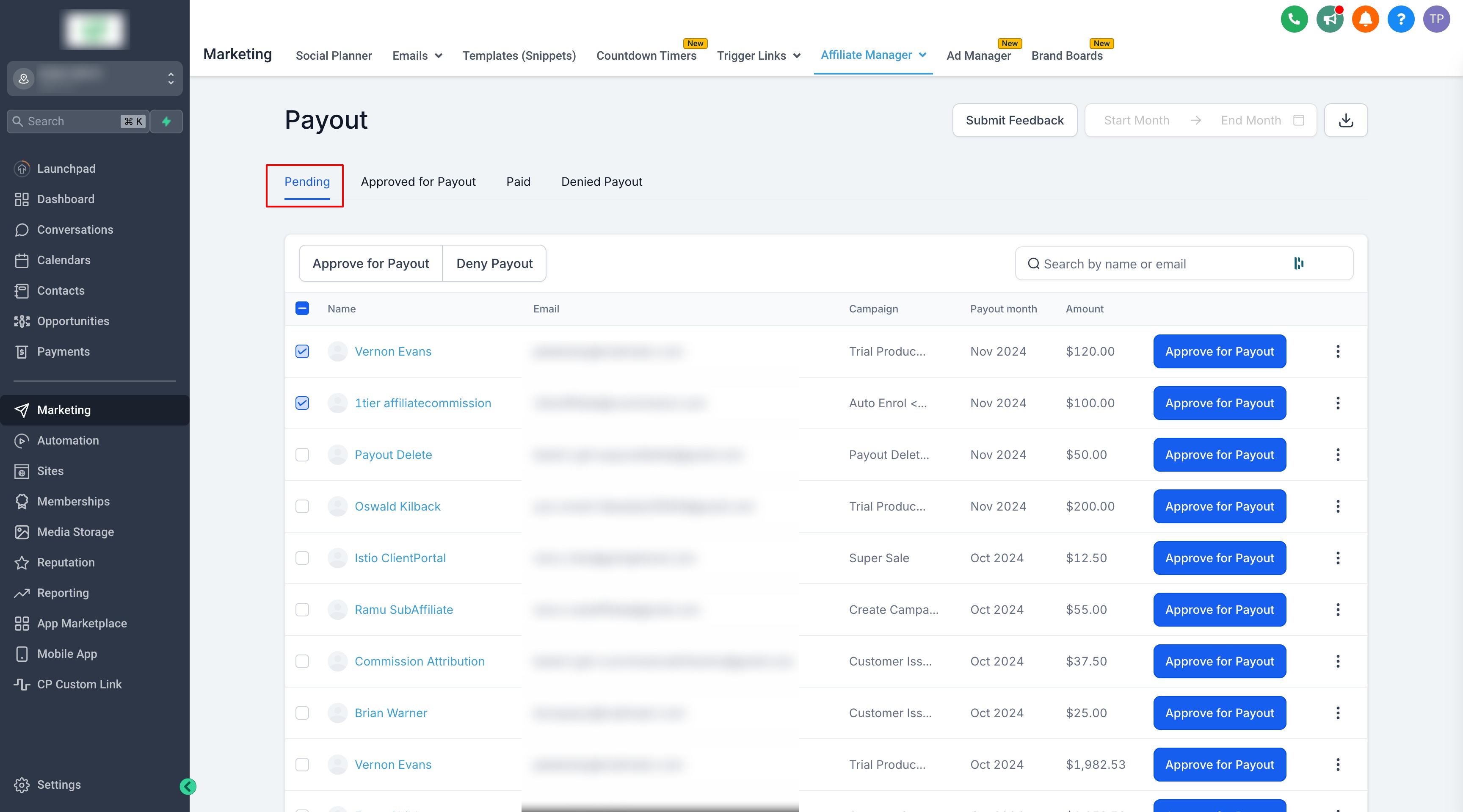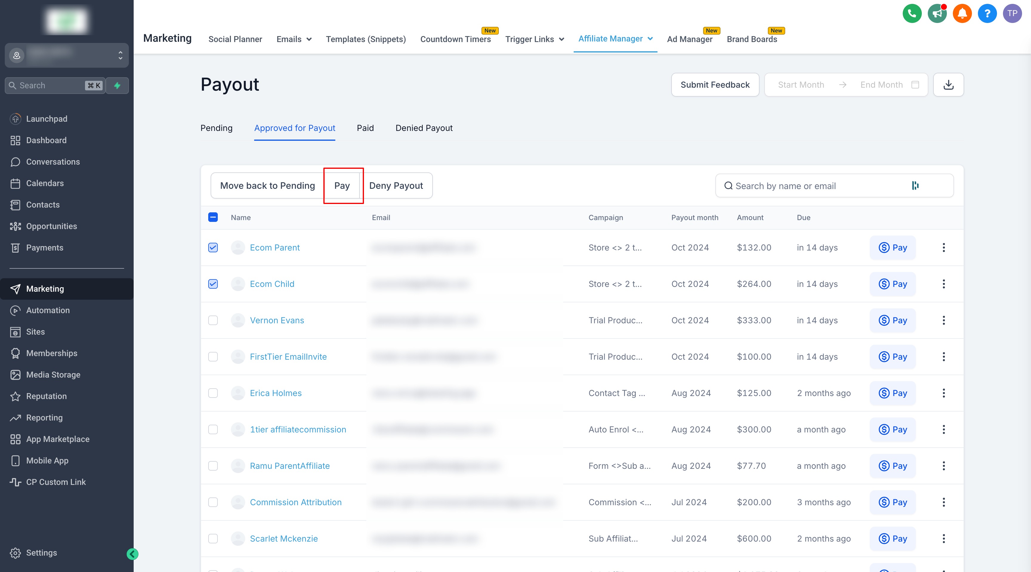 For those who prefer bank payments, GHL allows you to process payouts and then mark them as paid. Here's how to do it: