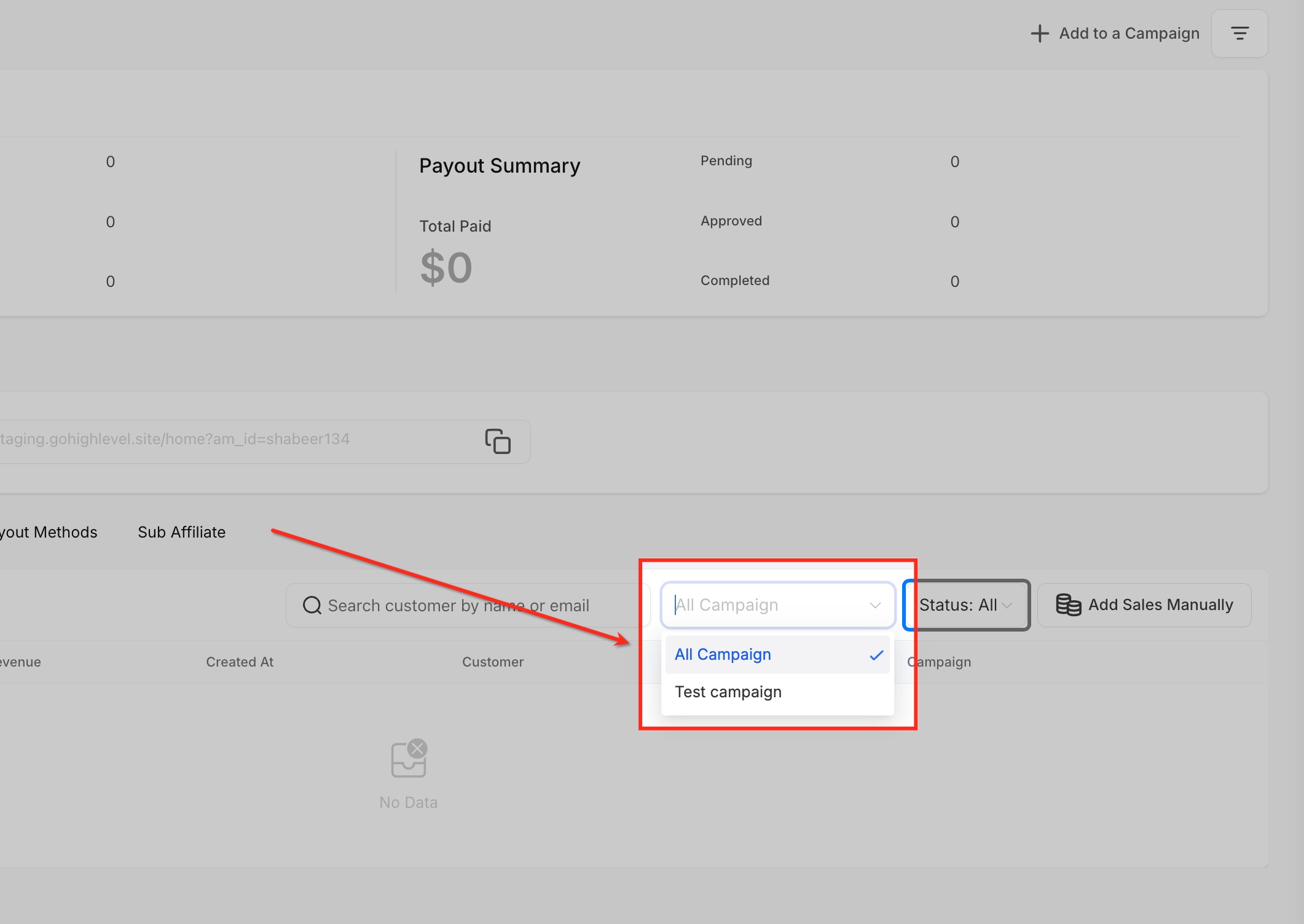 Use the Campaign filter to isolate commissions by affiliate campaign.