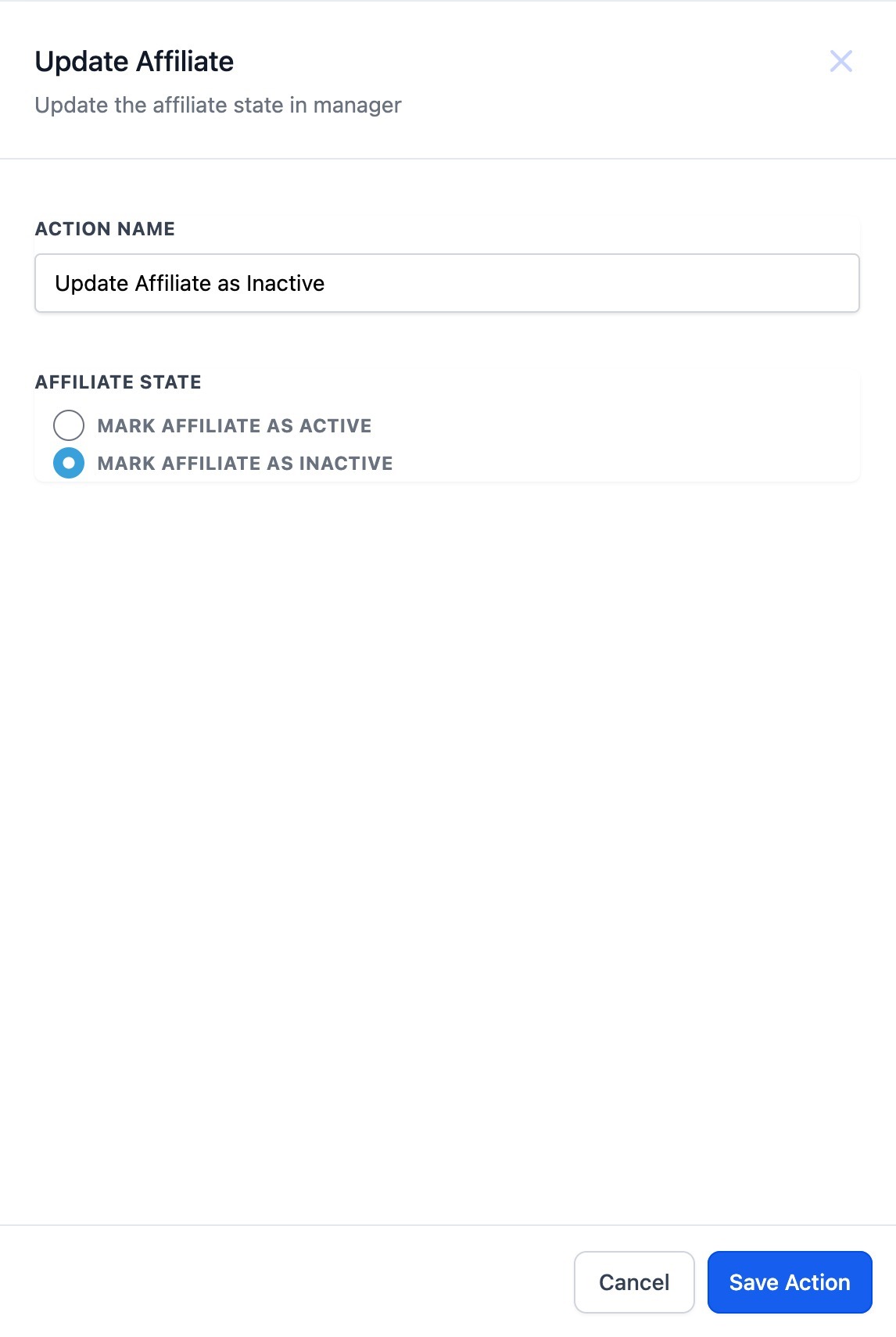 - If an affiliate hasn’t met the activity requirements after a set period, this automation can automatically update their status to inactive.