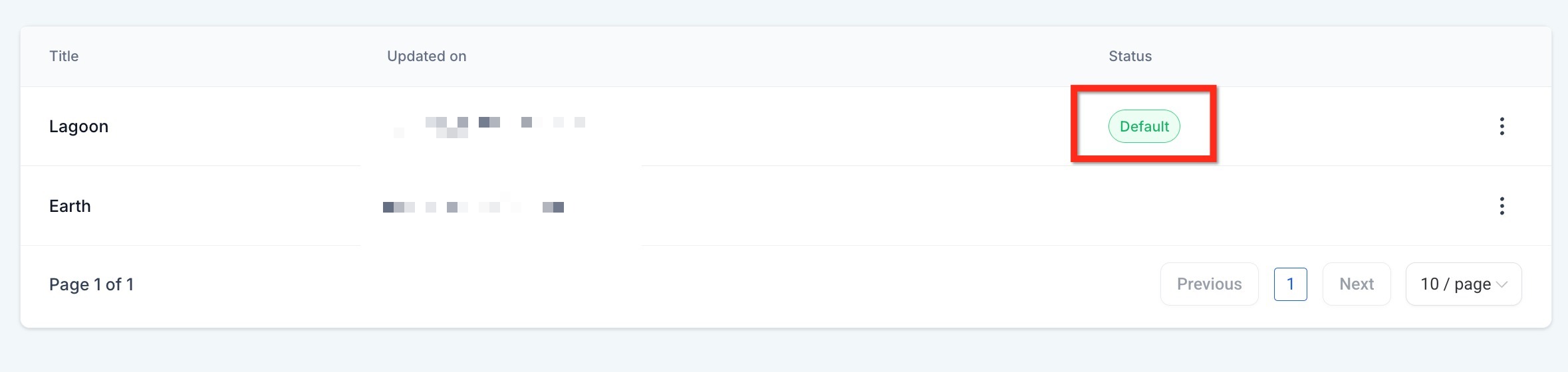 - The Brand Board set as default will have Default show as the status