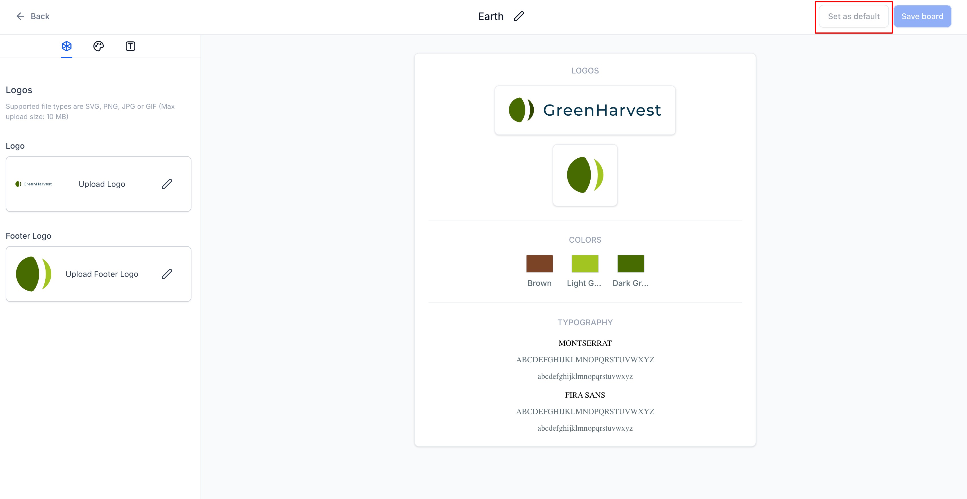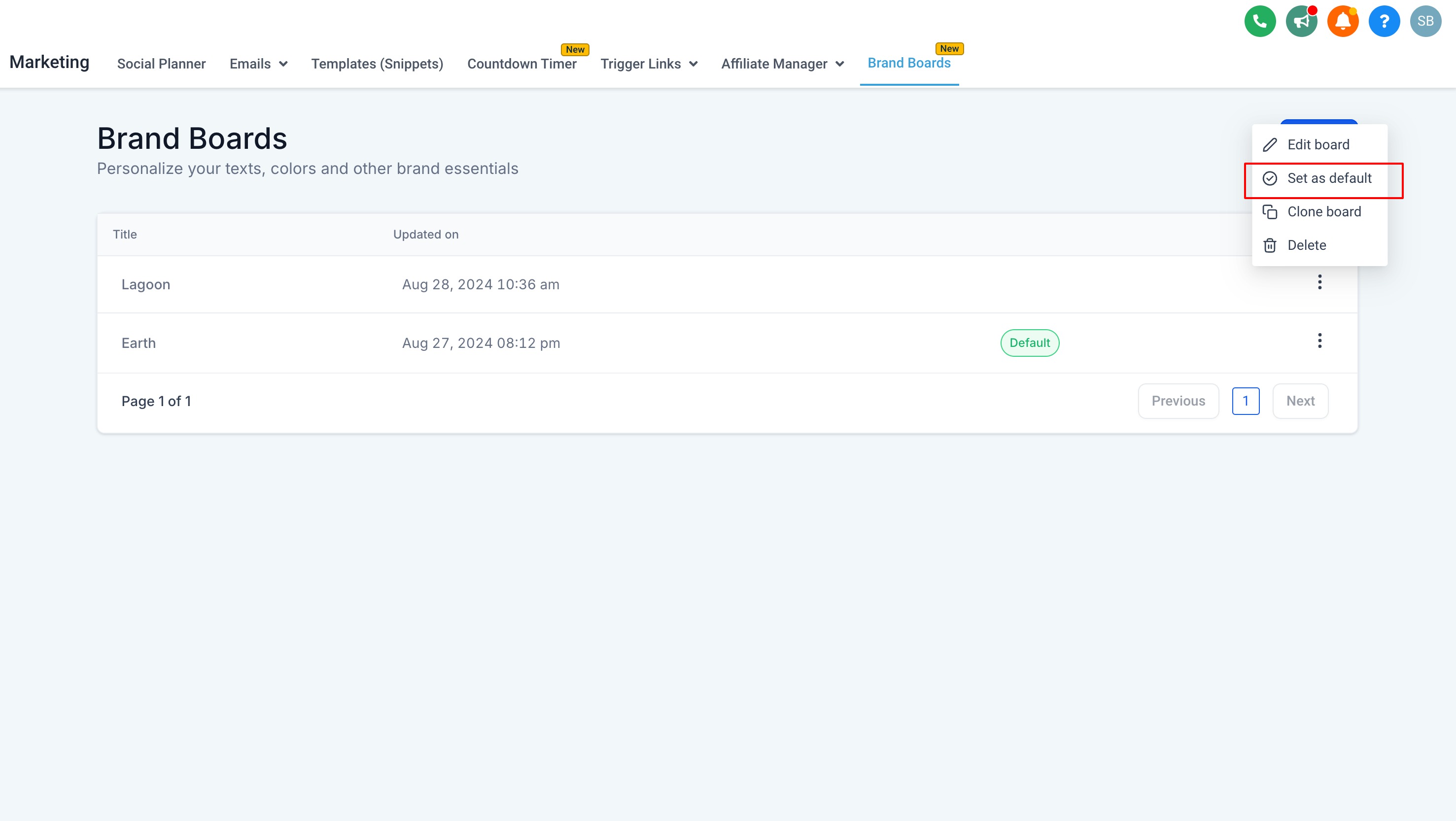 Alternatively, you can set the brand board you wish to make as default while editing the Brand Board: