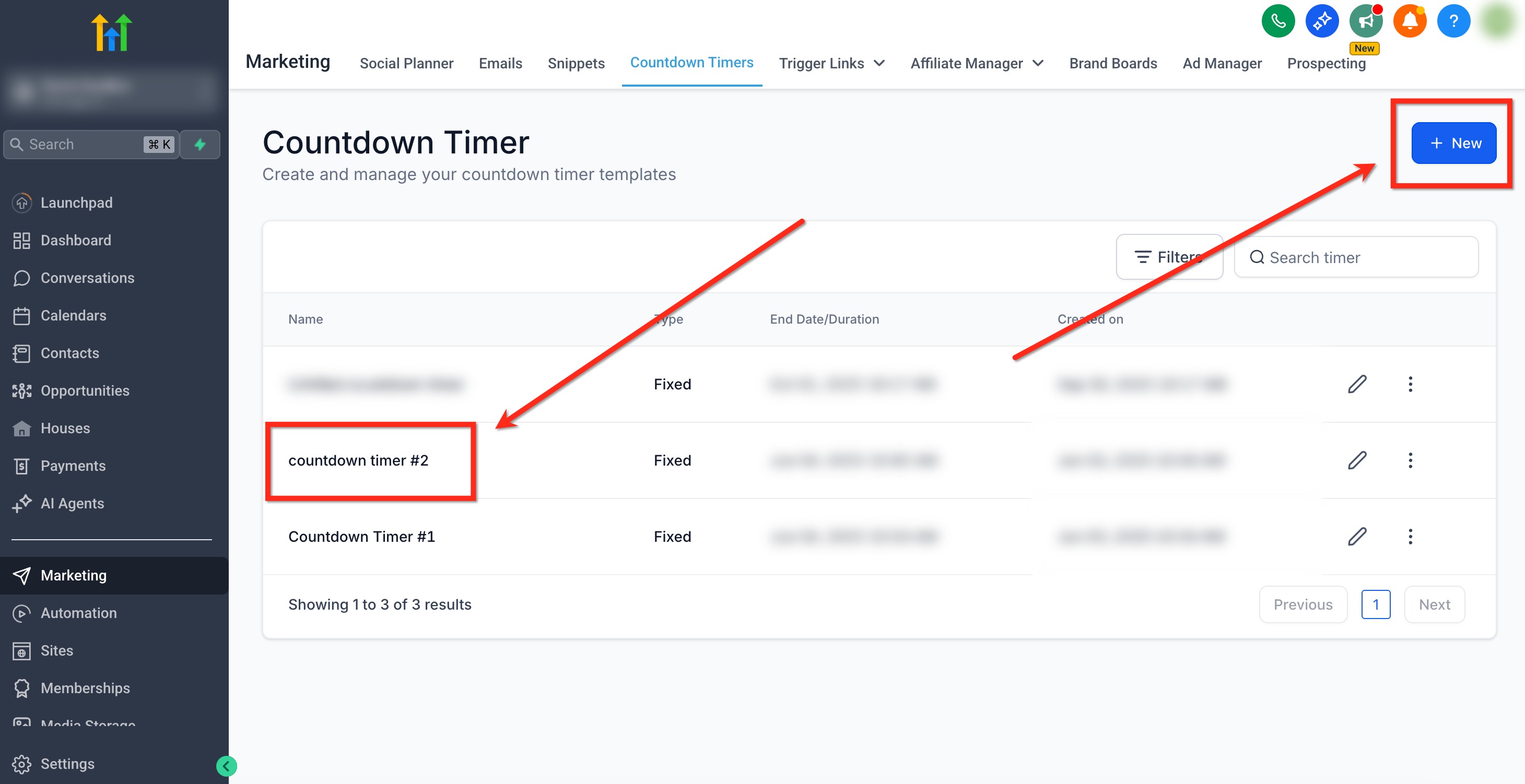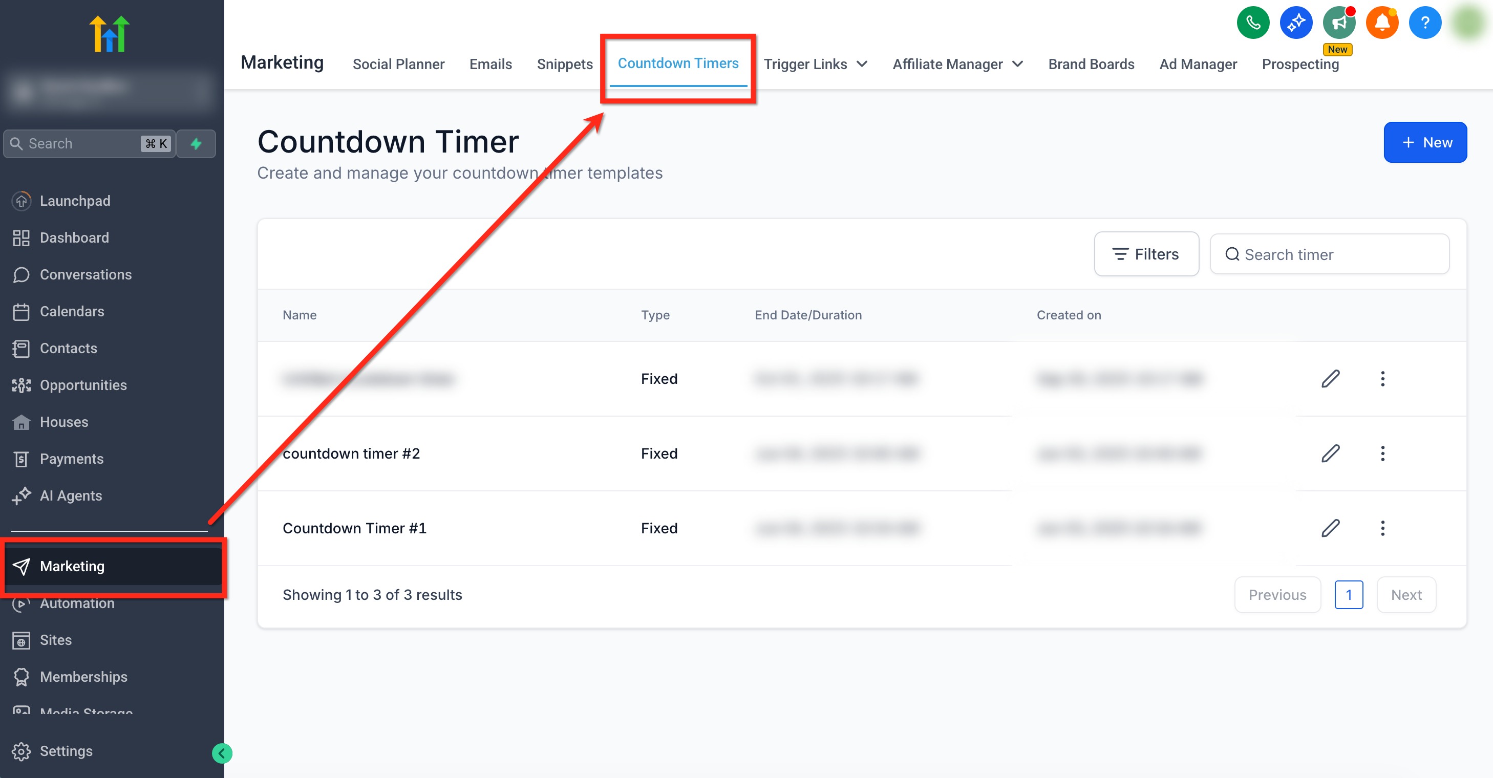 1. Navigate to Marketing → Countdown Timer.
