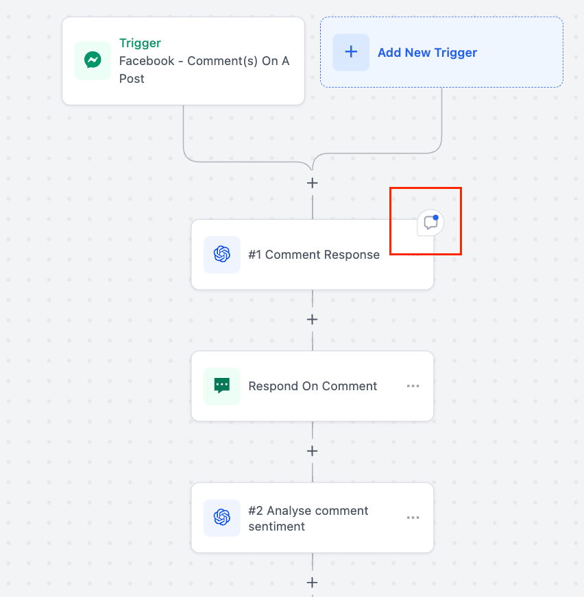 - When hovering over any action in a workflow, users will see a notes icon in the top-right corner of the action. Clicking it allows them to add action-specific notes.