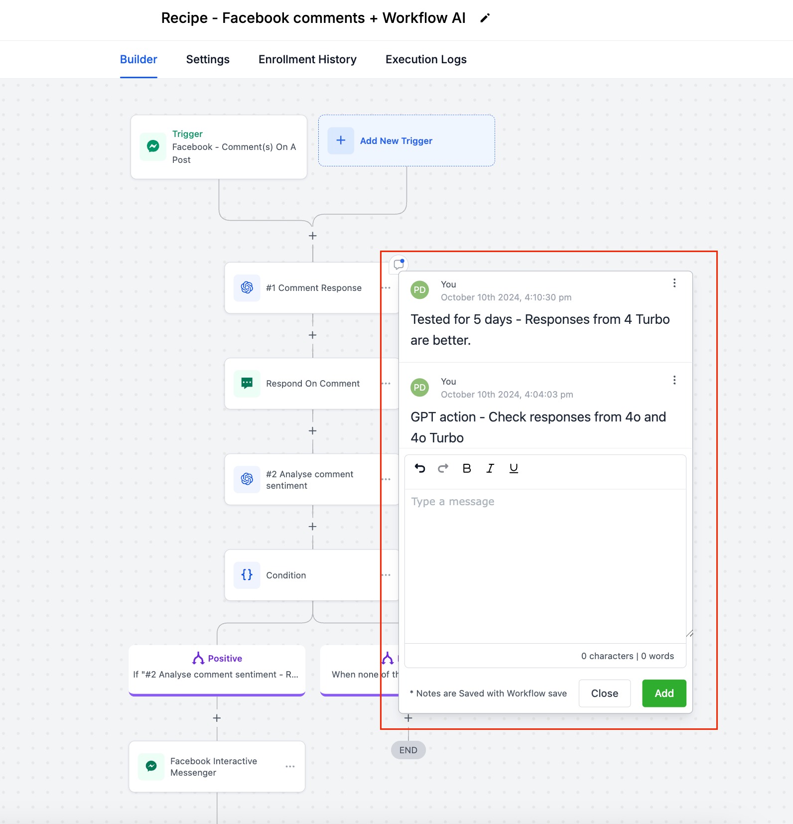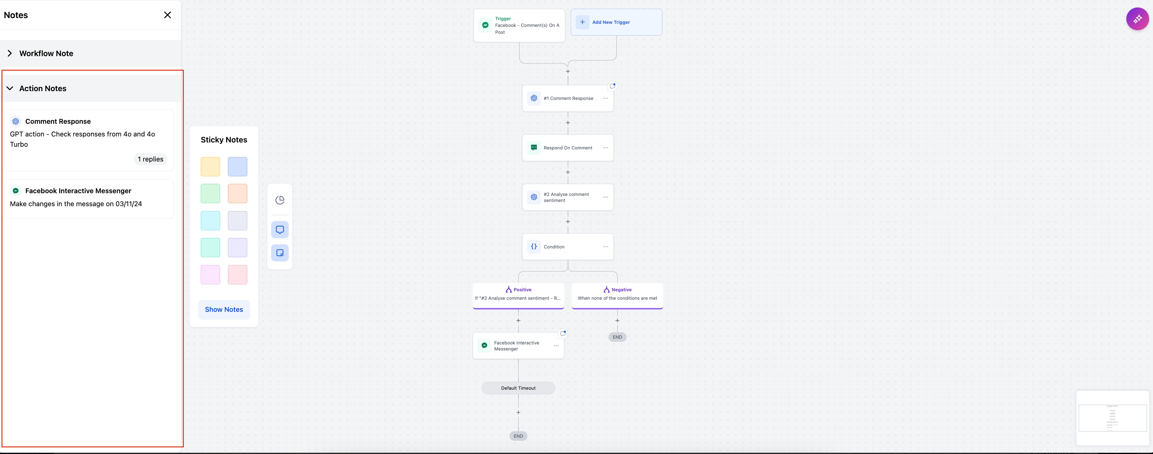 - Action-Level Notes: Attach notes directly to actions to provide specific instructions, feedback, or background information. This ensures clarity and supports collaboration when different team members are involved in workflow management.