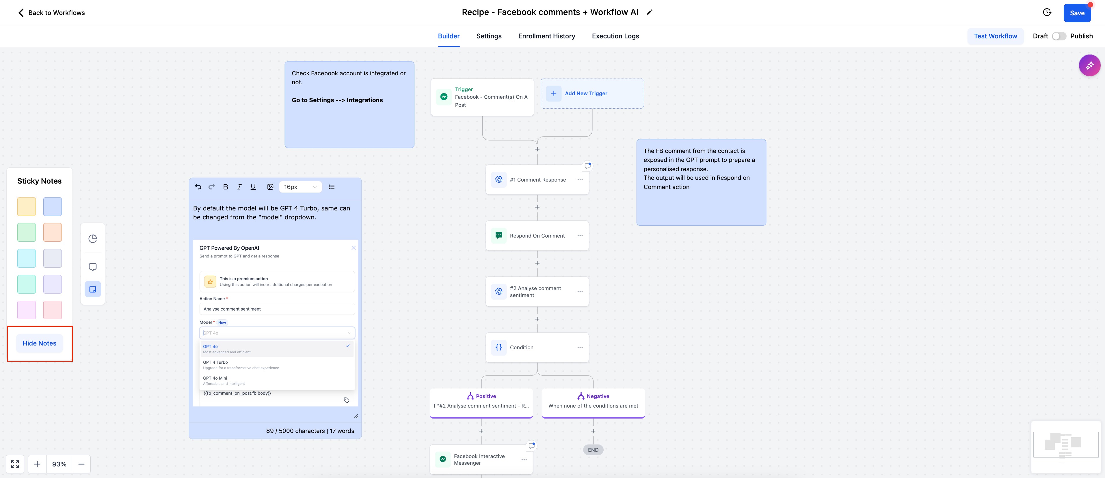 The Workflow Notes, Action Notes, and Sticky Notes features in HighLevel provide users with a convenient way to add context, comments, or key information directly within workflows. These tools enhance collaboration, streamline communication, and allow users to easily reference critical details when managing workflows.