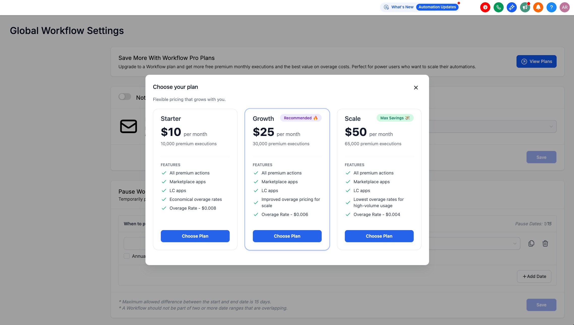 Consolidated billing: All Premium Triggers/Actions, Marketplace Apps, and LC Apps are billed together, separate from your core subscription.