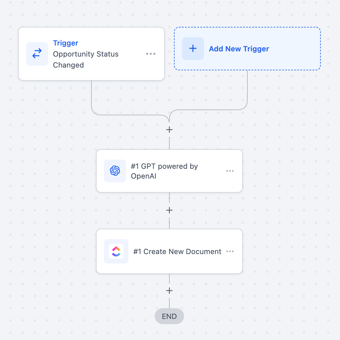 Create New Document (ClickUp) → Save the AI-generated proposal in ClickUp under the “Sales Docs” folder.