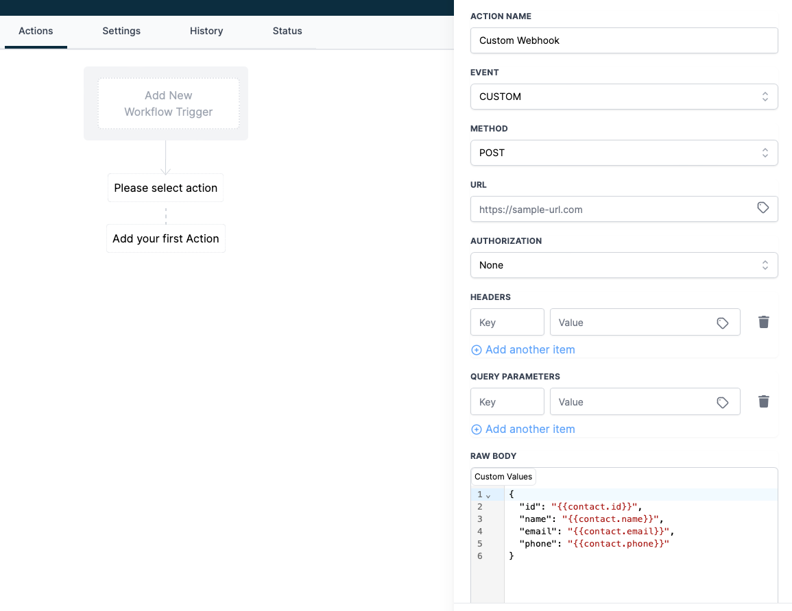 The Custom Webhook - Premium Action is a powerful and flexible feature that enables real-time communication between your CRM system and third-party services. It allows you to configure and send custom data requests to specified URLs using different HTTP and authorization methods. This feature also supports adding headers, query parameters, and mapping custom values to create a tailored request structure that meets your needs. With autocomplete suggestions and user-friendly interfaces, the Custom Webhook streamlines data exchange and ensures accuracy in your workflows. However, it is crucial to consider API response success and server limitations when using this feature to prevent errors and disruptions in workflow execution.
