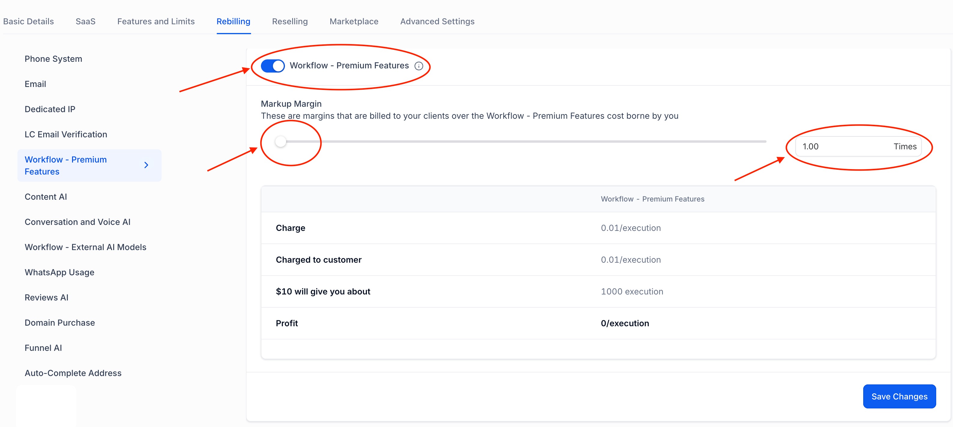 - You can enable or disable the Premium Features feature or rebill for each Sub-Account in Agency Settings > Workflows - Premium Features You can access Sub-Account Settings only if Premium Features are enabled at the Agency Level.