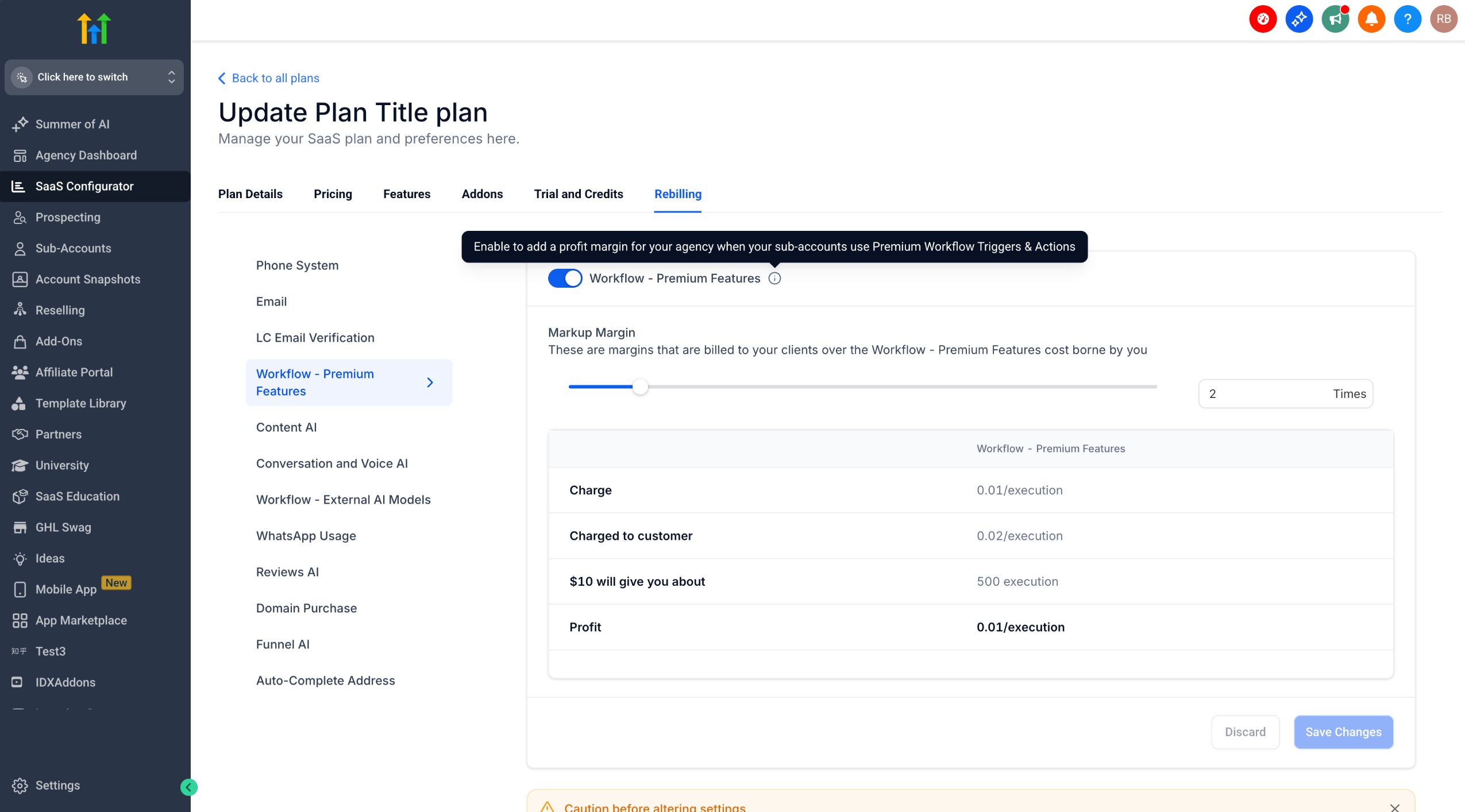 - Once Premium Features are enabled via the Agency settings, EXISTING and New Sub-Accounts will have 100 free executions.