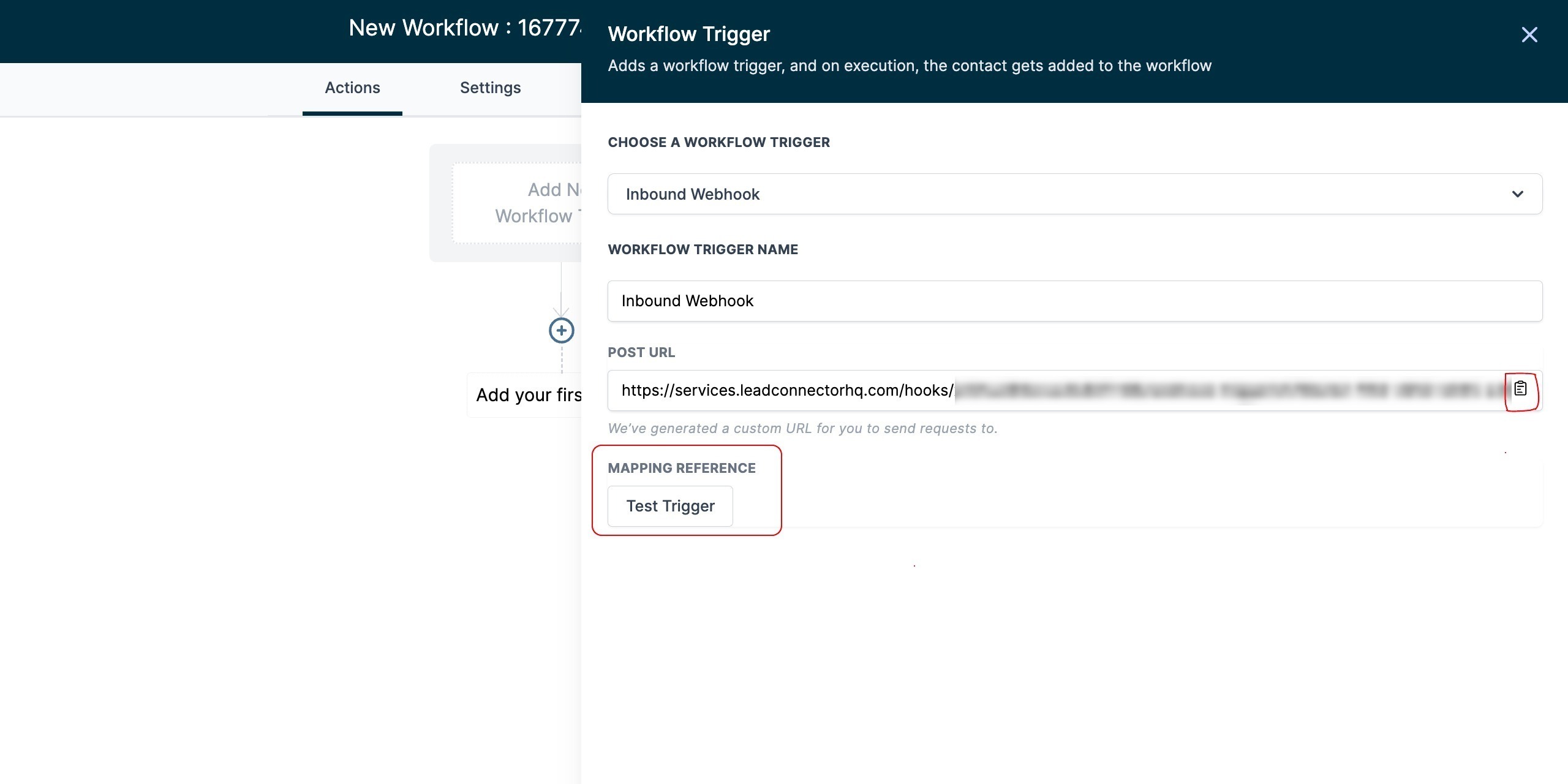 - If your Inbound Webhook Trigger URL gets compromised or leaked and you want to prevent unwanted requests, Delete the existing Inbound Webhook Trigger and Add a New Inbound Webhook Trigger. A new URL with a different ending ID will be generated; update your integrations to match the new URL. Once saved, incoming requests from the old URL won't enter your workflow; only requests from the new URL will.