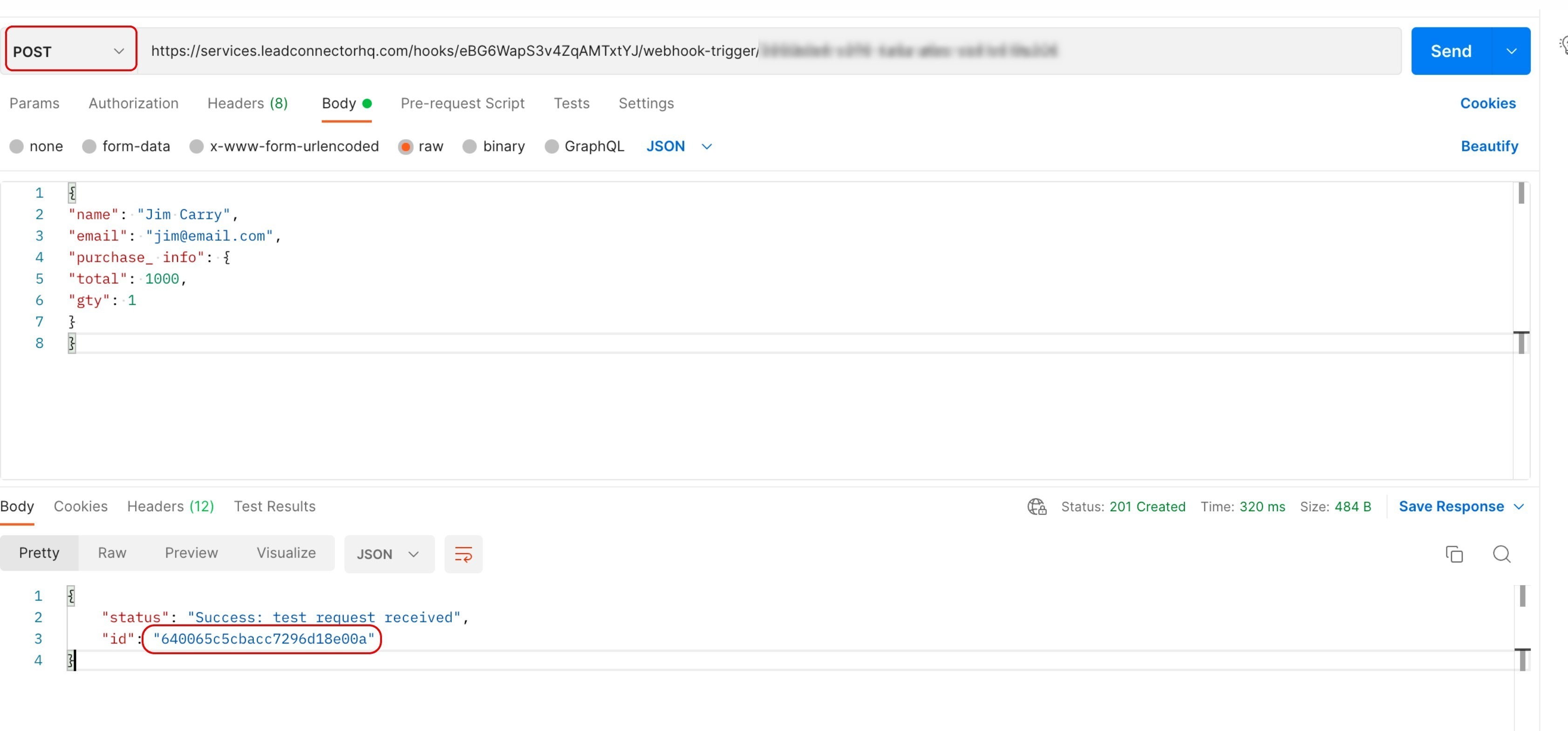 Step 2.1: Send a supported HTTP request (POST, GET, or PUT) to the copied webhook URL and copy the ID in the response.