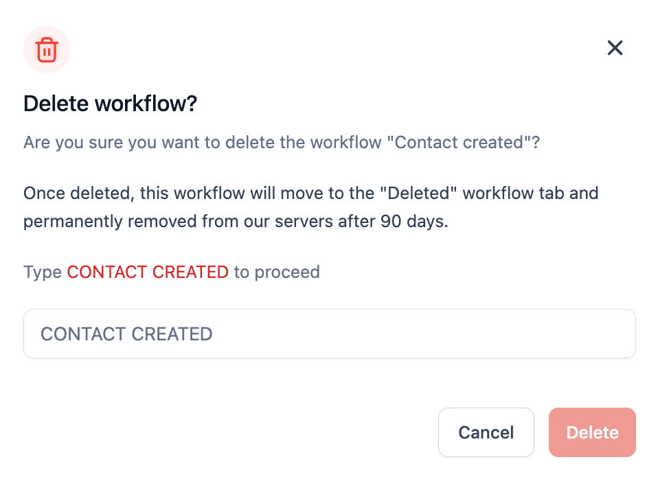 - To delete the workflow user has to type in the workflow name.