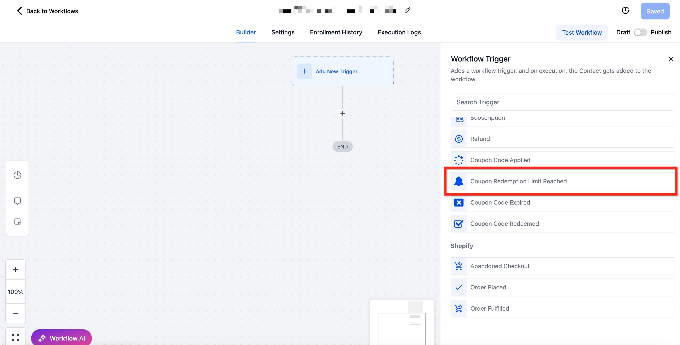 Configuring Coupon Redemption Limit Reached Workflow Trigger