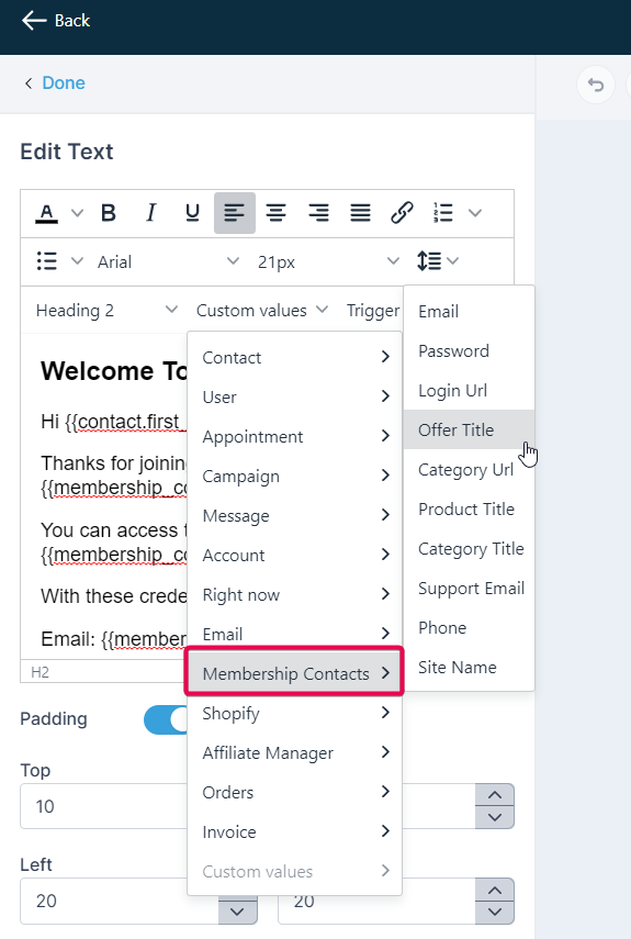Make sure to customize the email templates to fit your brand and voice. This will help build a stronger relationship with your members and improve engagement. Ensure that you have the correct custom values in place to personalize the email for each member. Custom values such as {{contact.first_name}} and {{offer.title}} can help make the email feel more tailored to the recipient.