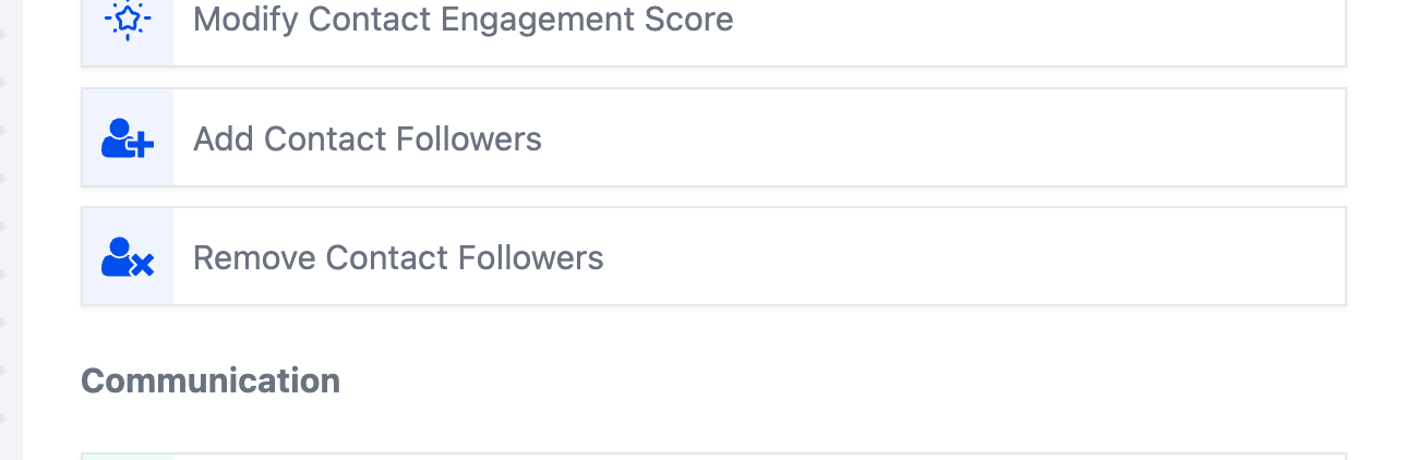 The Add Contact Follower action enables users to add one or more followers to a contact's profile.