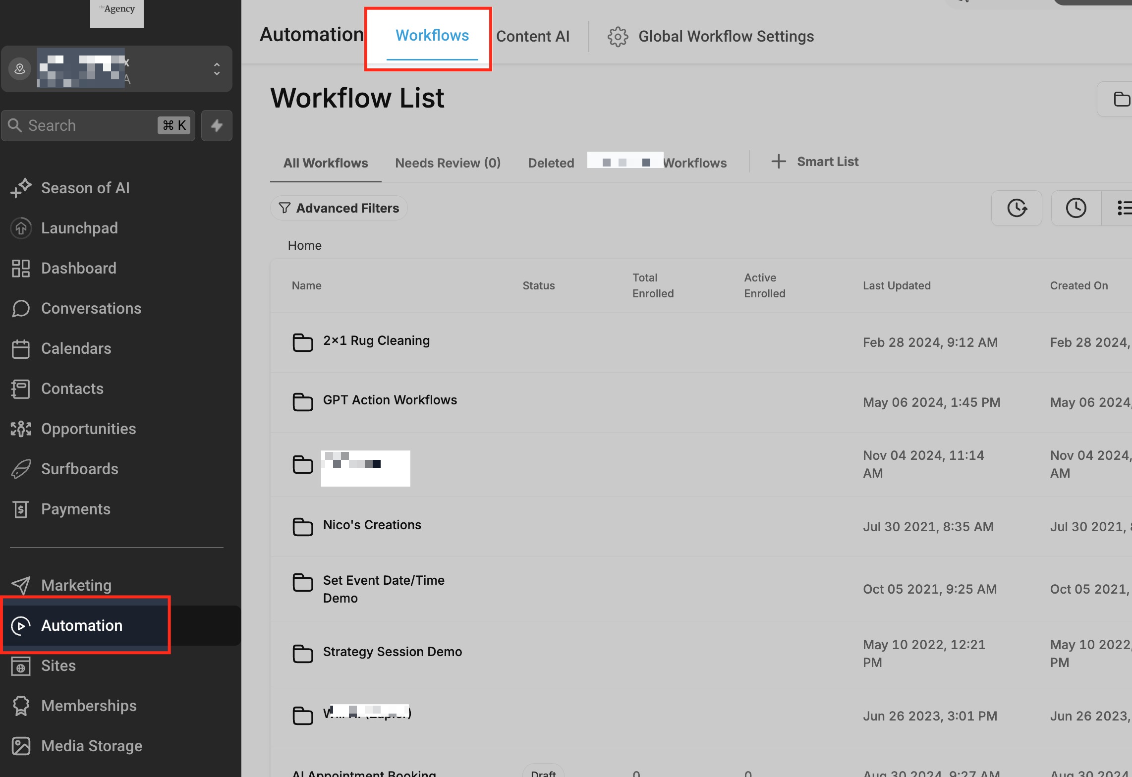 Head over to the "Automation" section of your CRM. Once you get there, click the "Workflows" menu.