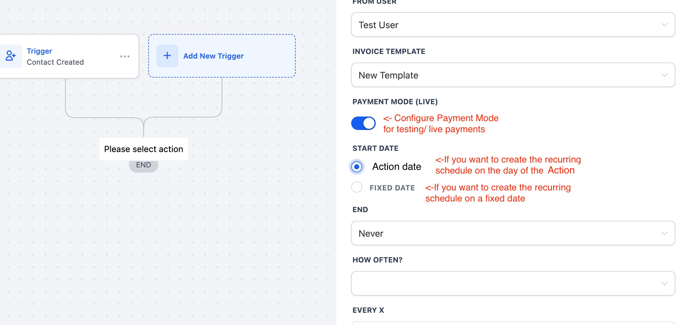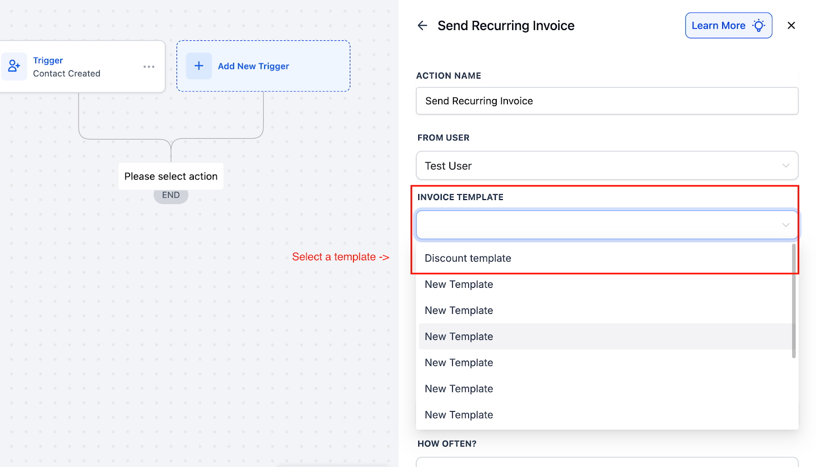 1. Add the “Send Recurring Invoice” Action