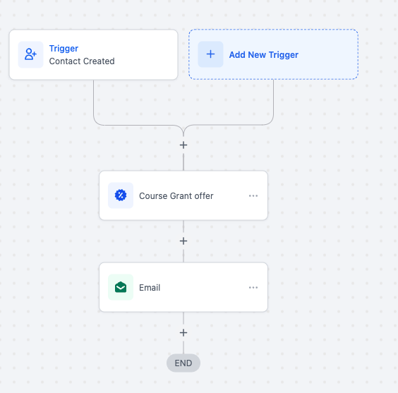 The Course Grant Offer action is designed to streamline the process of providing course access to contacts. It automatically enrolls users in a designated course, removing the need for manual intervention. This can be triggered by specific events or conditions, such as contact created.