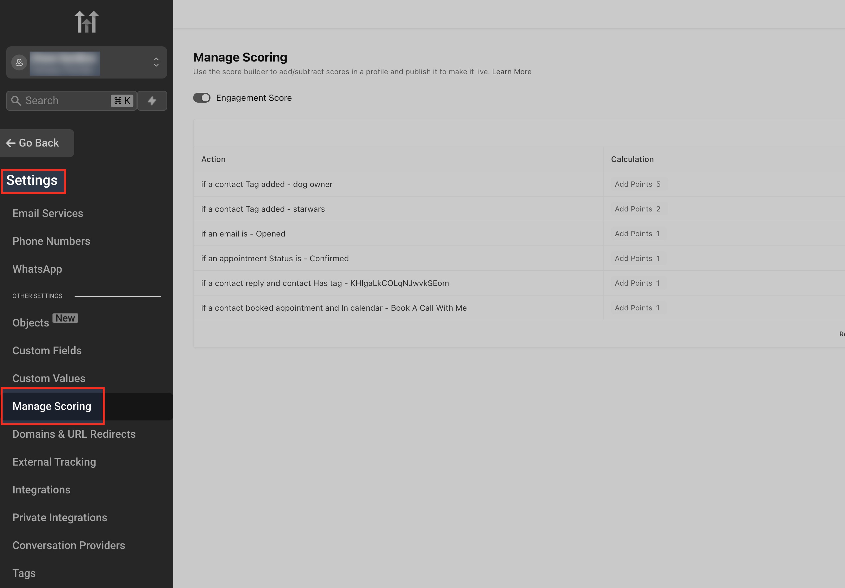 The Manage Scoring page in HighLevel has been rebuilt with the HiRise design, giving you a faster, cleaner workspace and share-friendly URLs that remember your exact view—helping teams fine-tune engagement scoring with less friction.