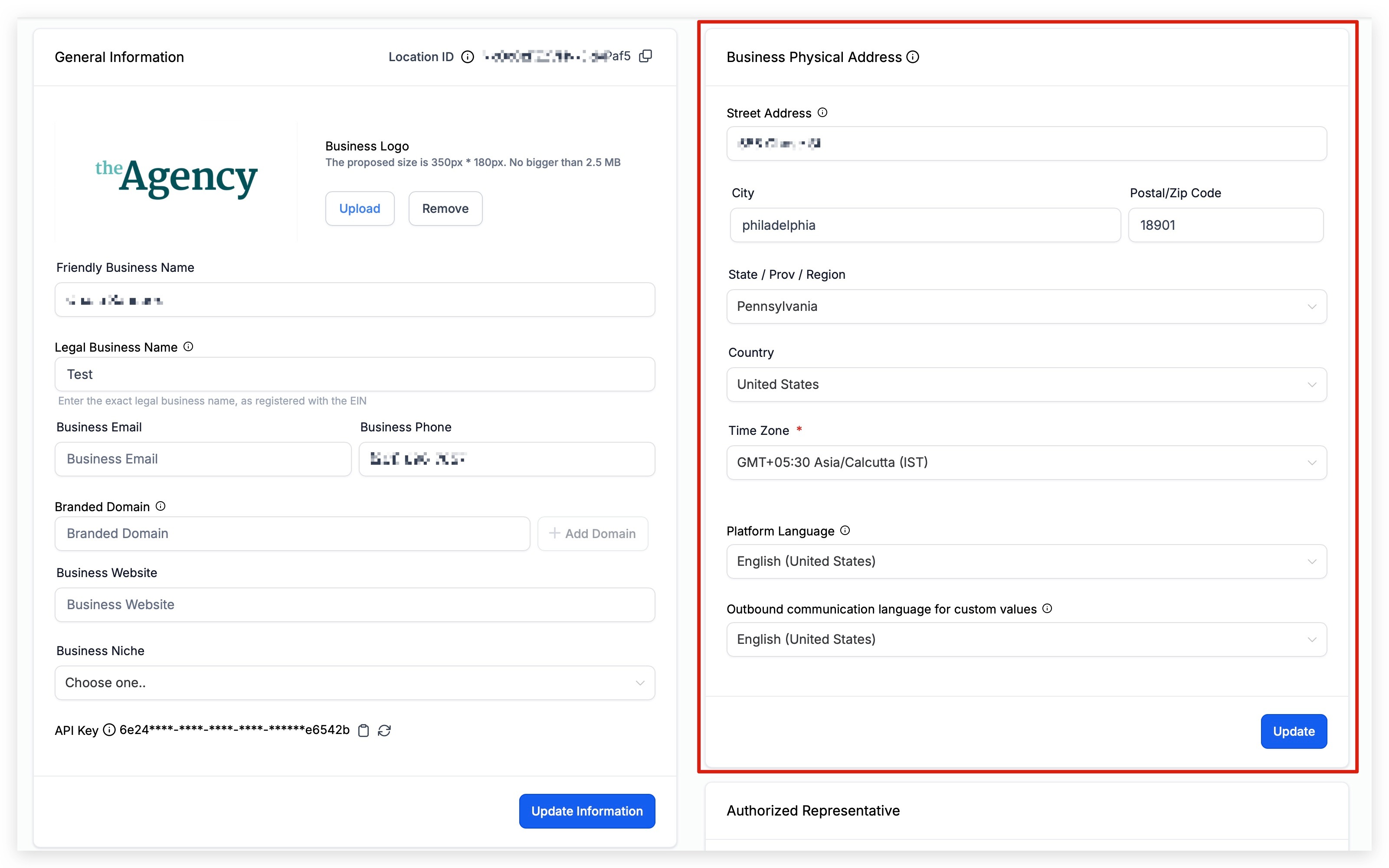 These fields act as the single source of truth for location and locale preferences in HighLevel. Complete each entry carefully, matching official records where noted. After updating, save your changes and spot-check a booking page and a test email/SMS to confirm that dates, times, and formatting look correct.