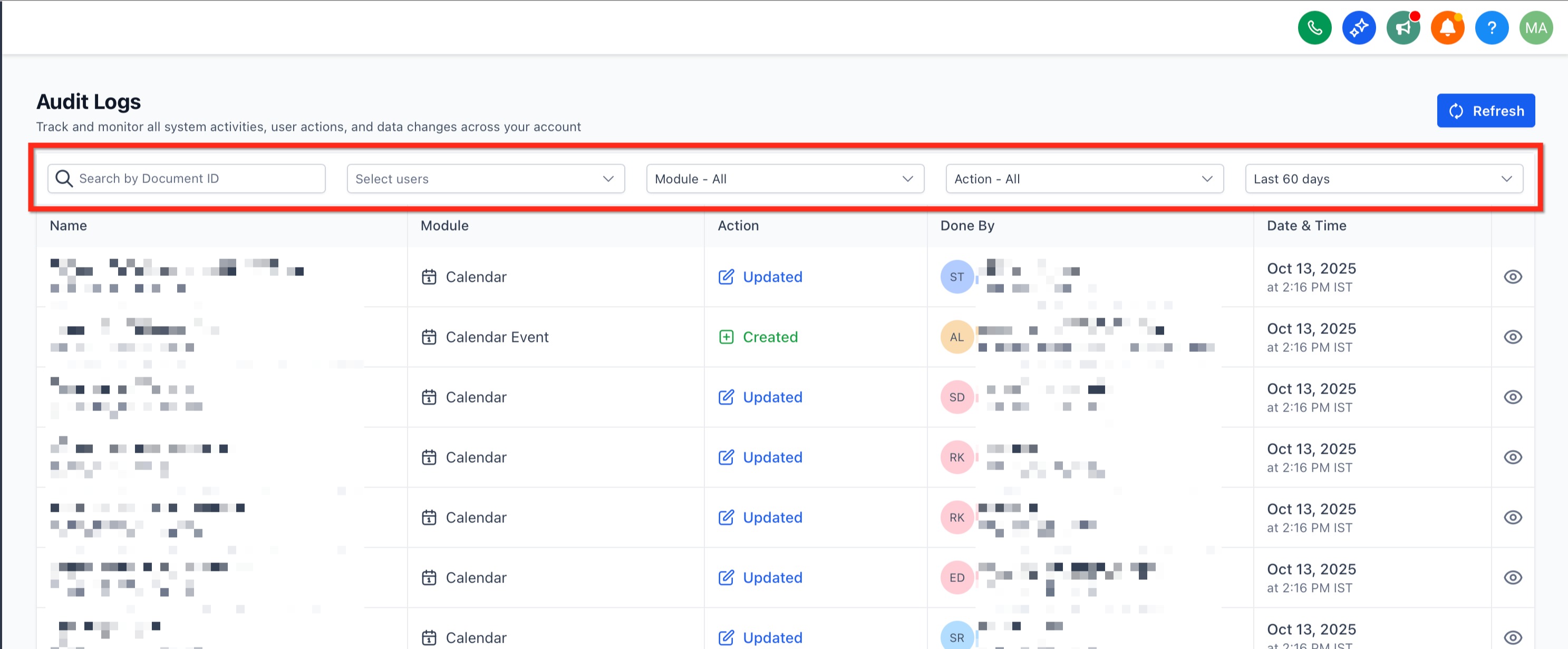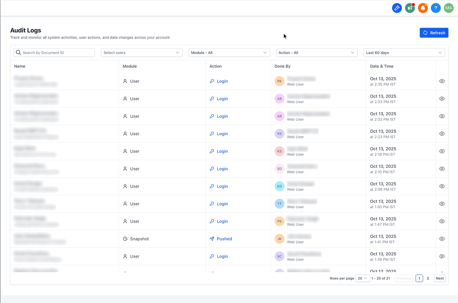 - Enhanced Visibility & Accountability: Track all changes made to users, accounts, and settings to maintain a clear record of modifications.