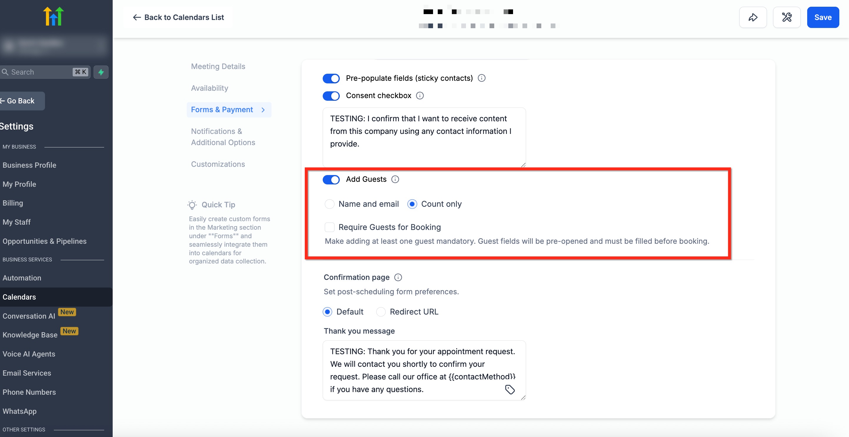 This article will show you how to use the improved Add Guests features in HighLevel’s calendar bookings. You can now require guest information and charge payments based on total attendee count—making it well-suited for group sessions, classes, or any service involving multiple participants.