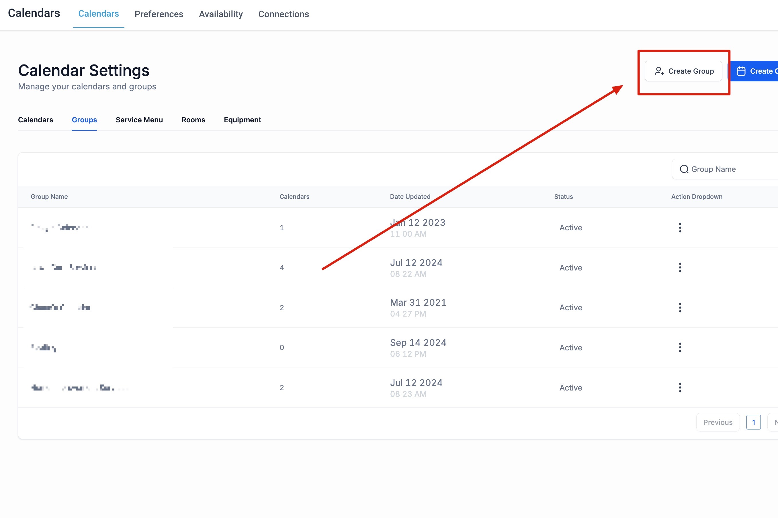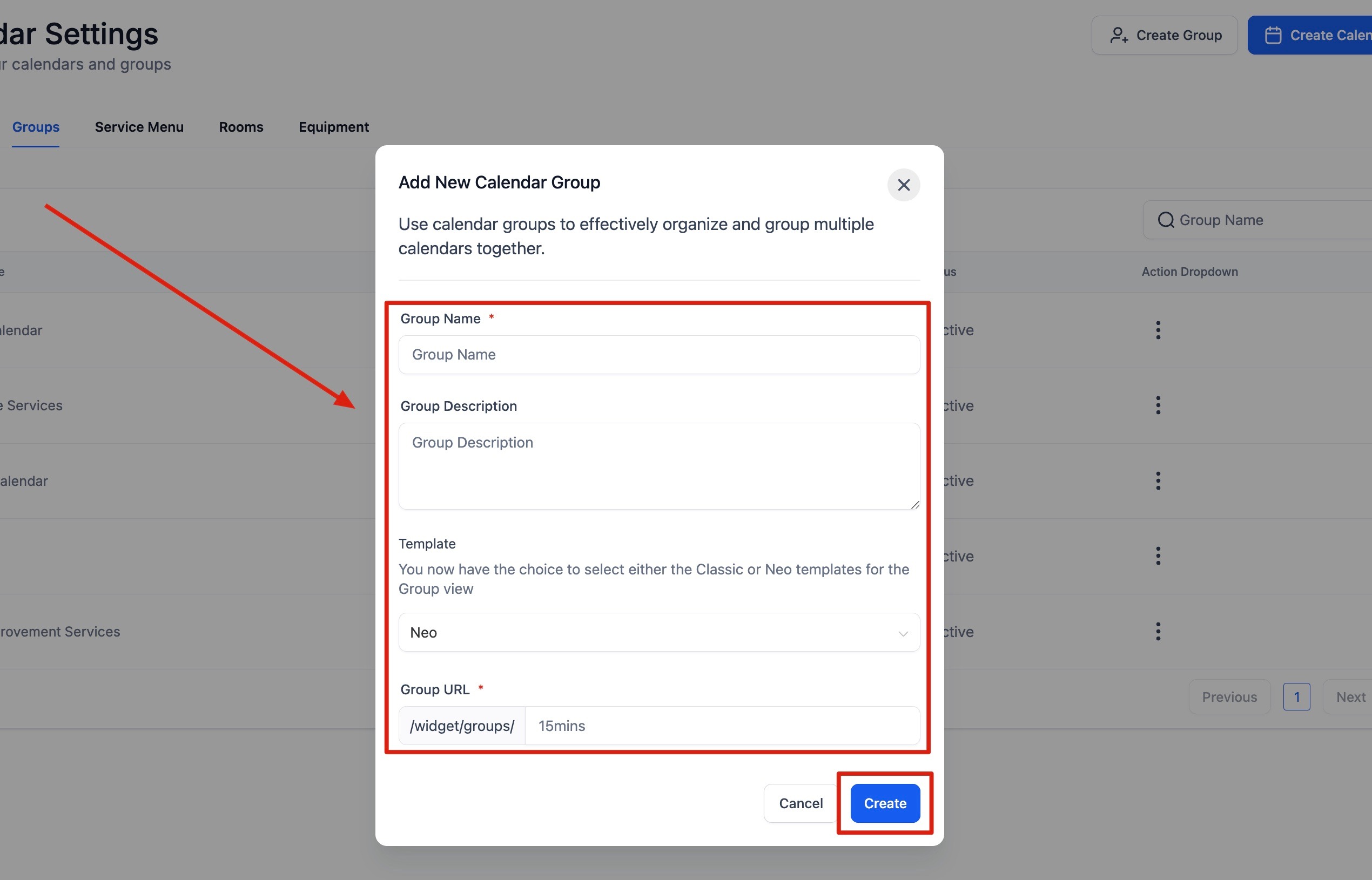 Calendars >> Calendar Settings >> Groups >> Create Group
